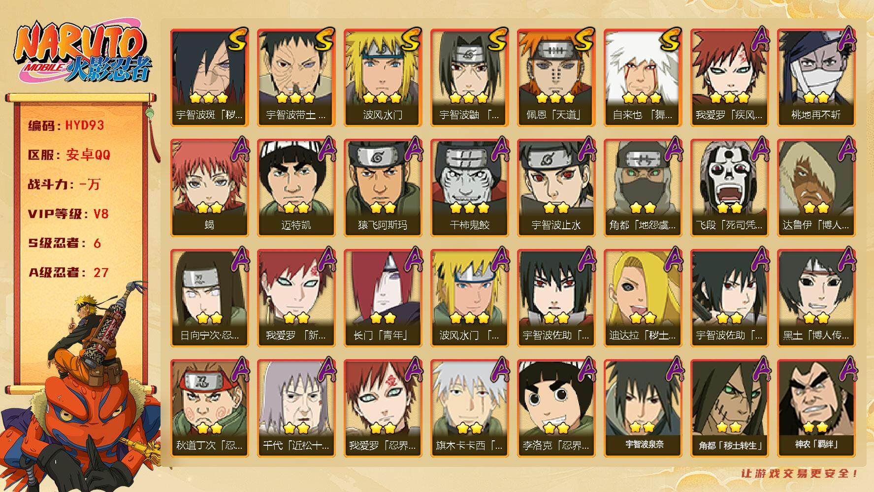 火影忍者【安卓QQ】出售火影千万在榜账号,提升性非常大
