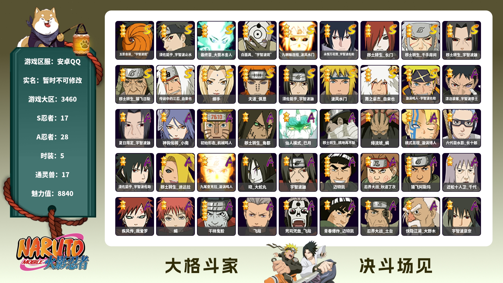 【S忍者10 A忍者27 通灵15】【安卓Q-2904区-144级-V3-685