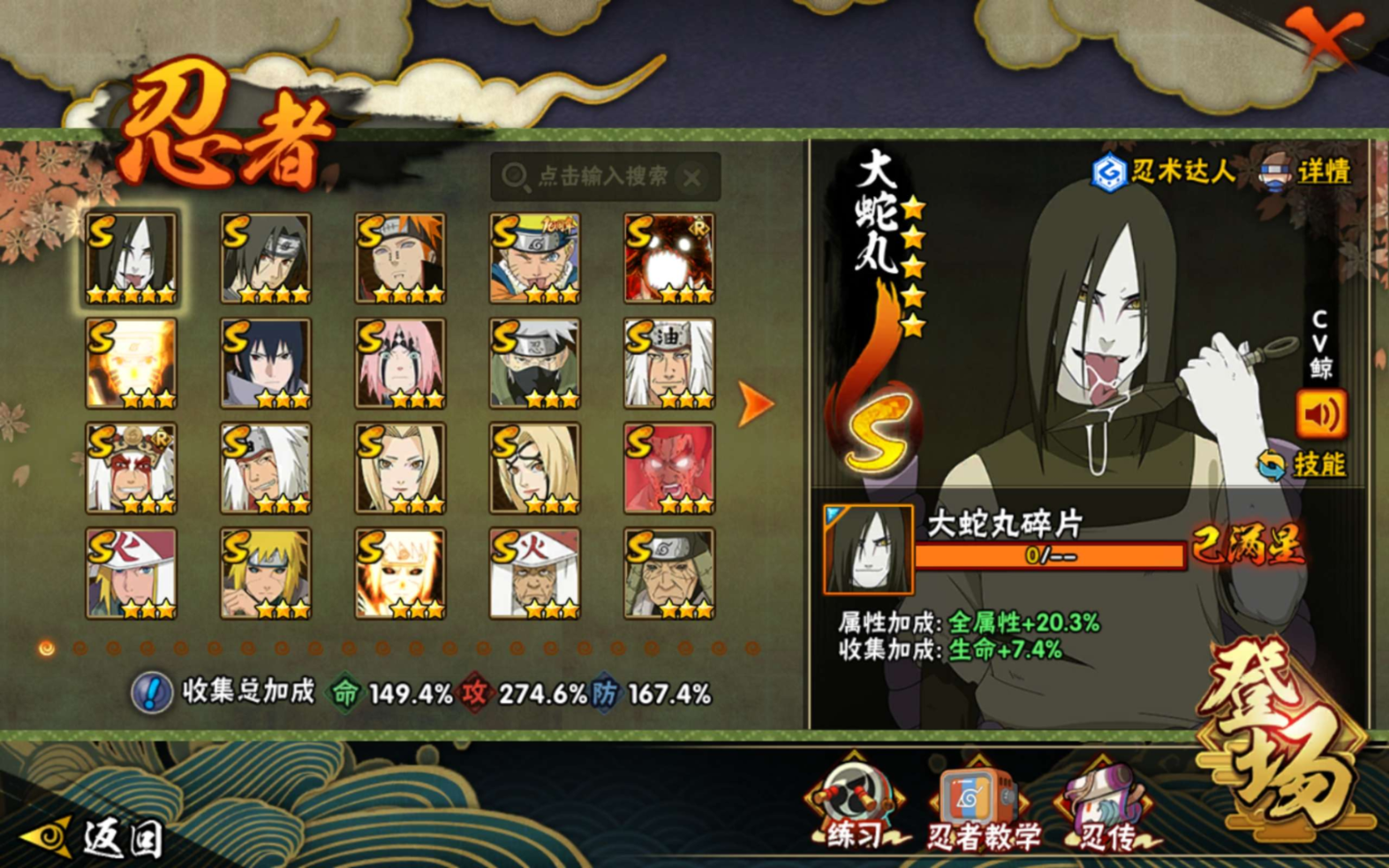 29S级忍者数-43A级忍者数【S级忍者】:长门「秽土转生」(3星)