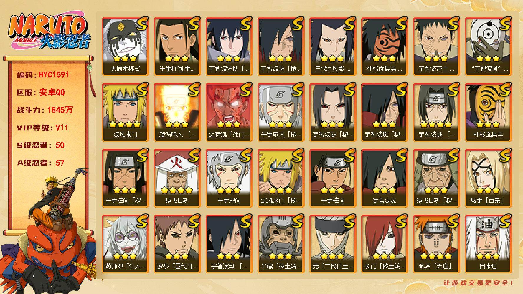 安卓QQ-可二次实名认证-究极火影-2650w战力-7万金