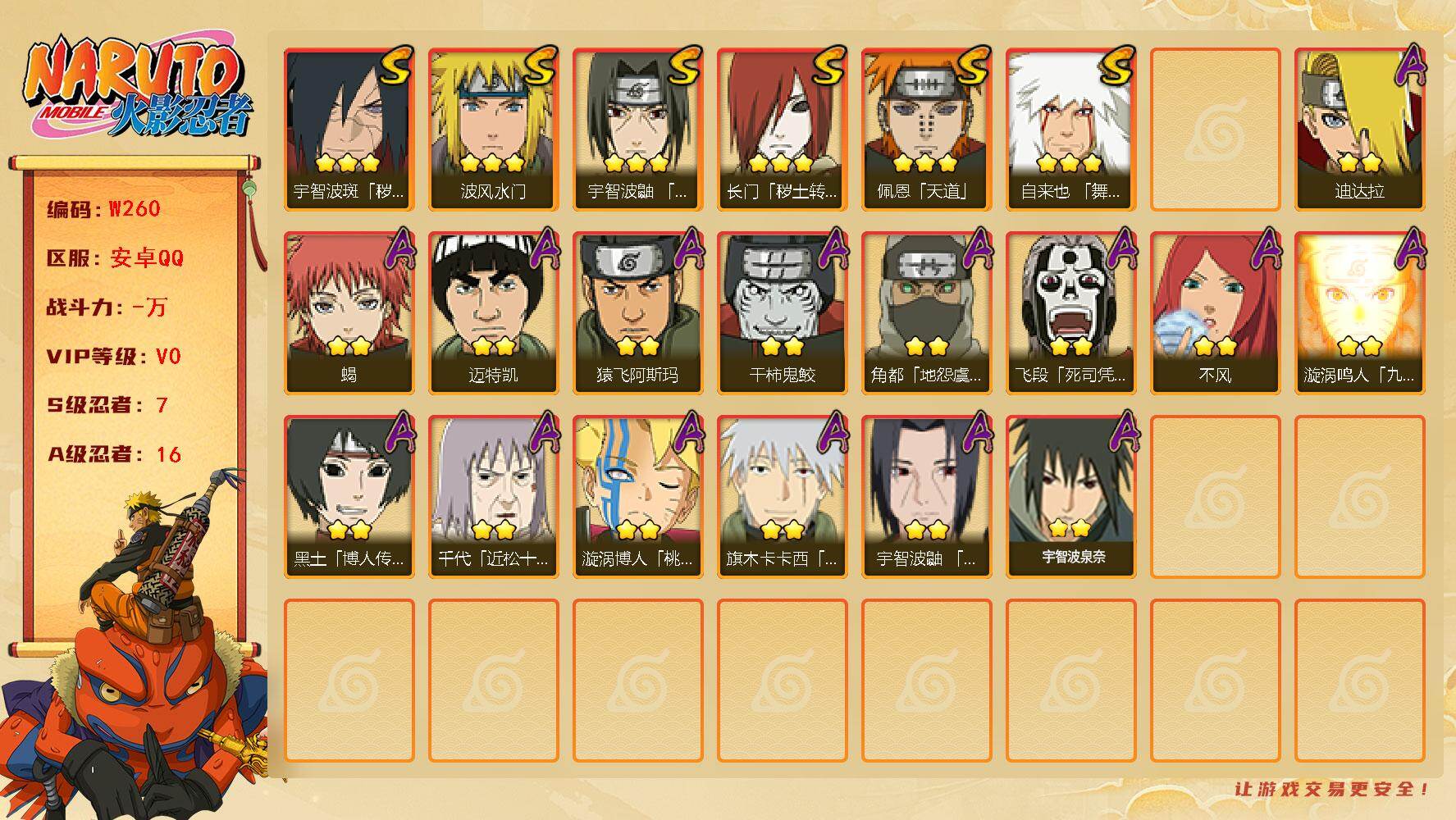 安卓QQ/可二次极品新手入坑免肝号到手即玩-S忍者数:7-