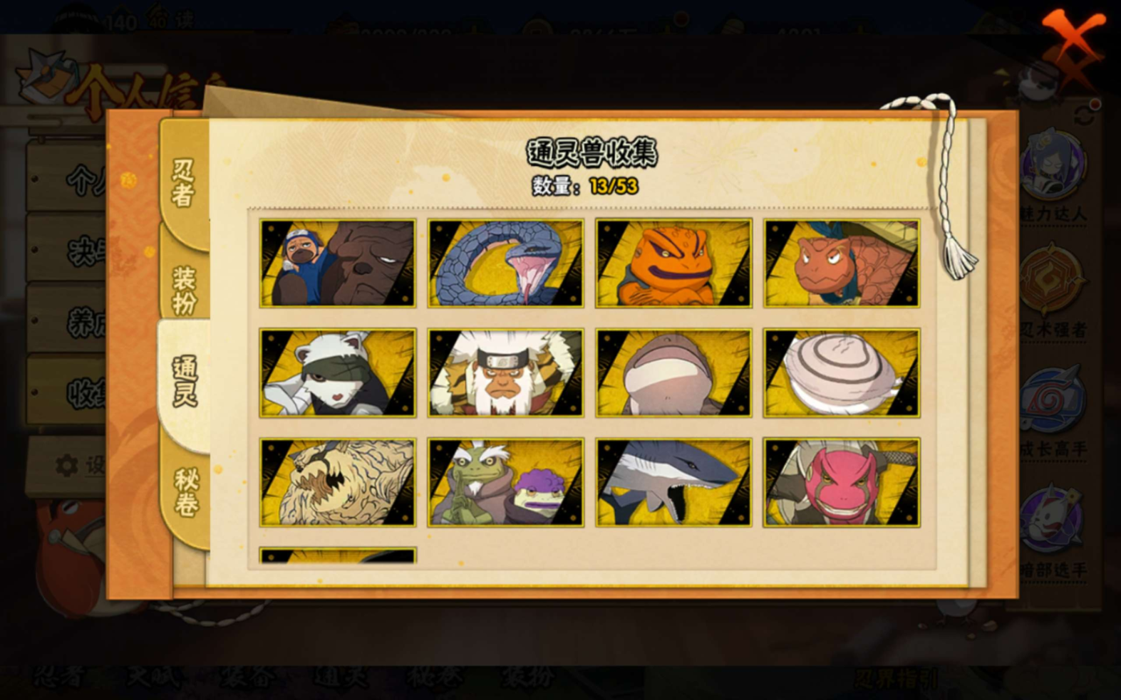 角色等级144 金币1031 战斗力6949416 S忍14 A忍33 5星S忍者10 9 段位上忍