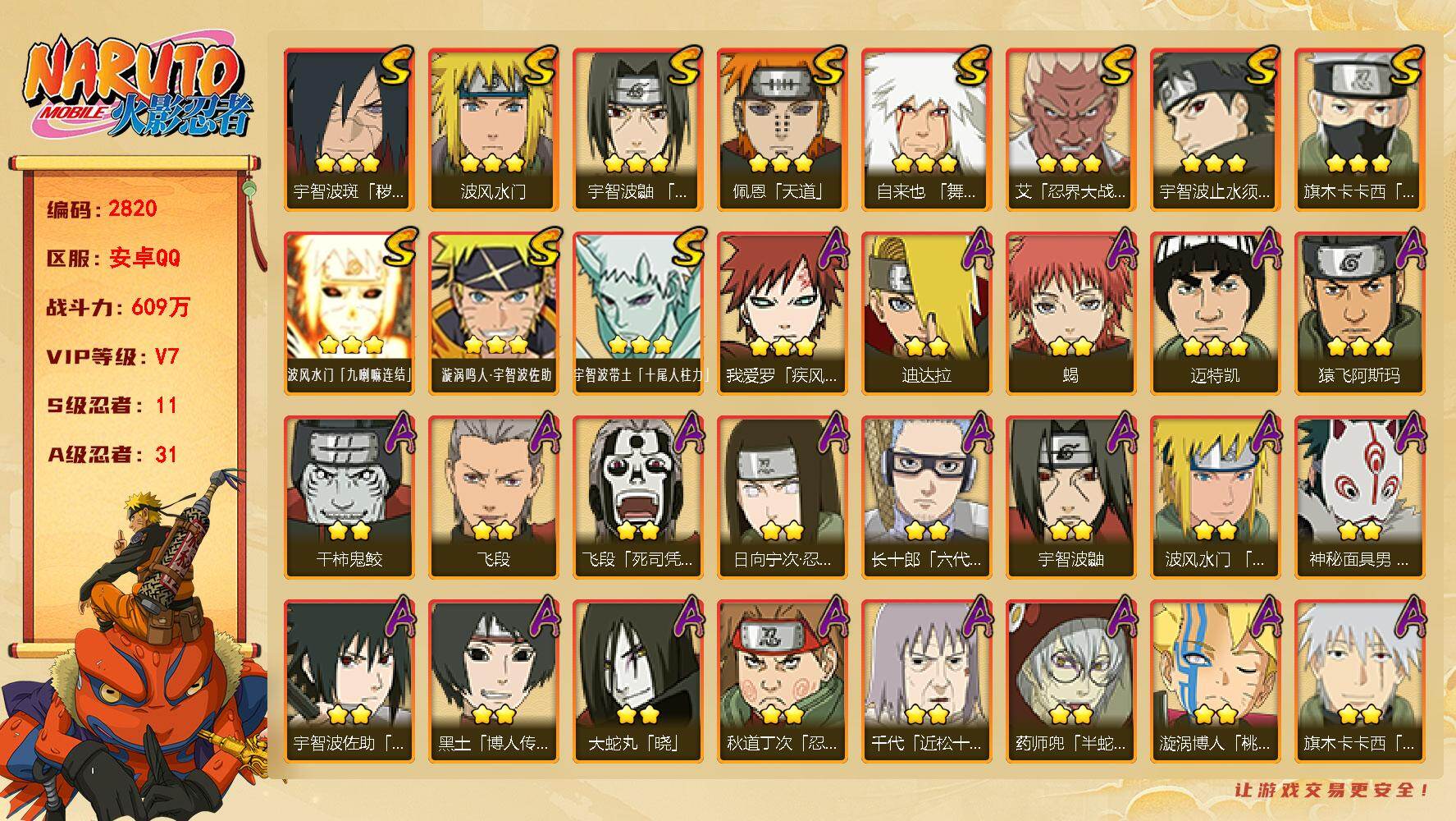 安卓qq-可二次-800多万战力-s忍者数:13- A忍者