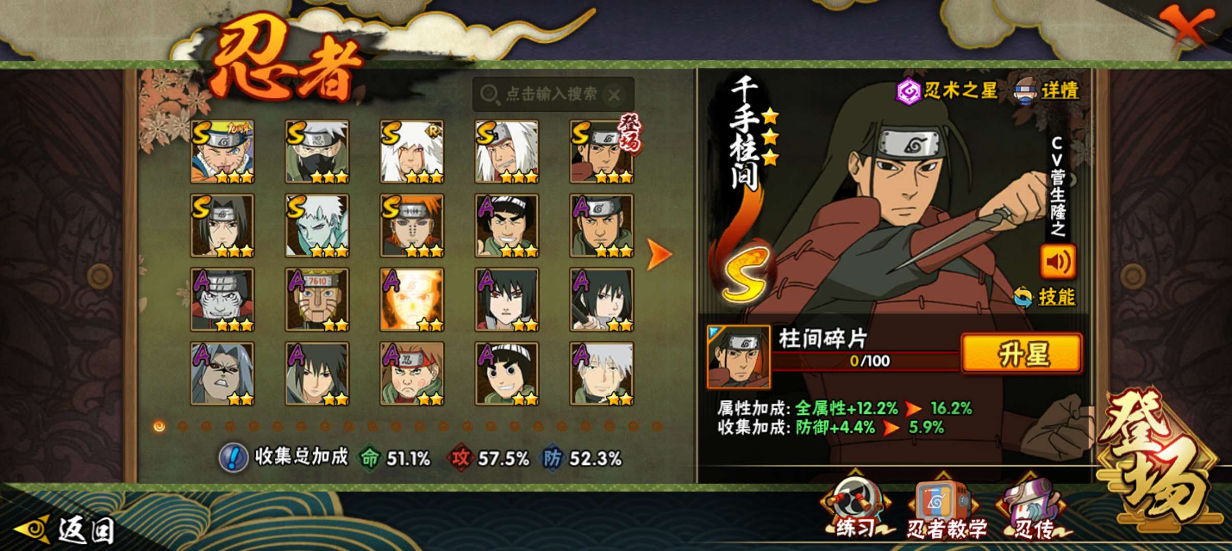 角色等级141 金币12000 战斗力6370000 S忍18 A忍38 5星S忍者14 10 段位中忍