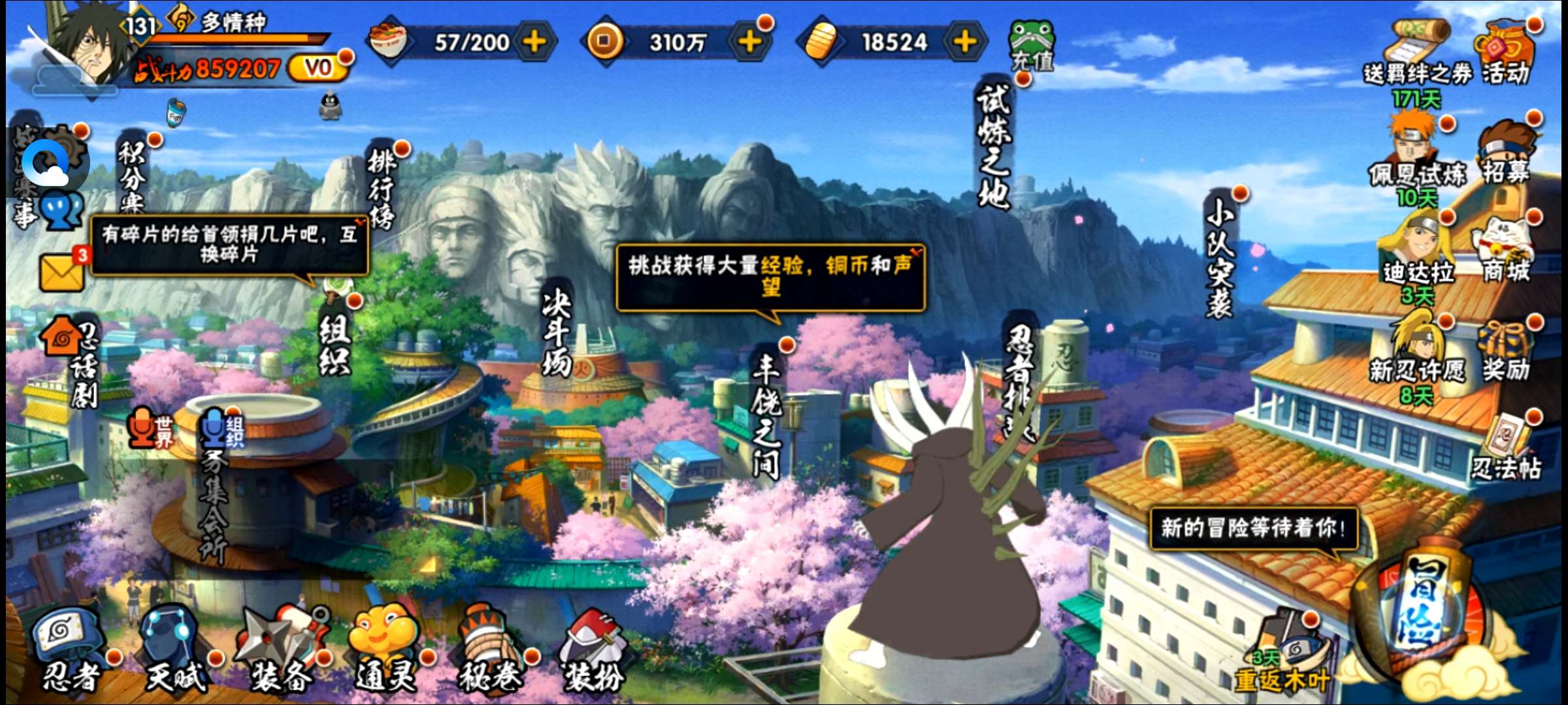 金币和高招卷可以抽十尾带土,基础忍者都有,限时点券3000没花,和平声望10