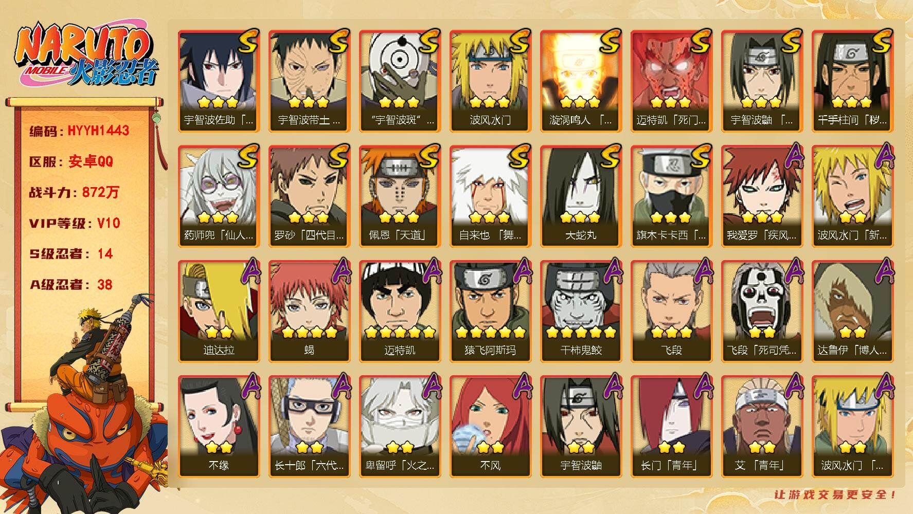 【HYYH1443】V10/战力872W/S忍14/A忍38/2星波风水门「新