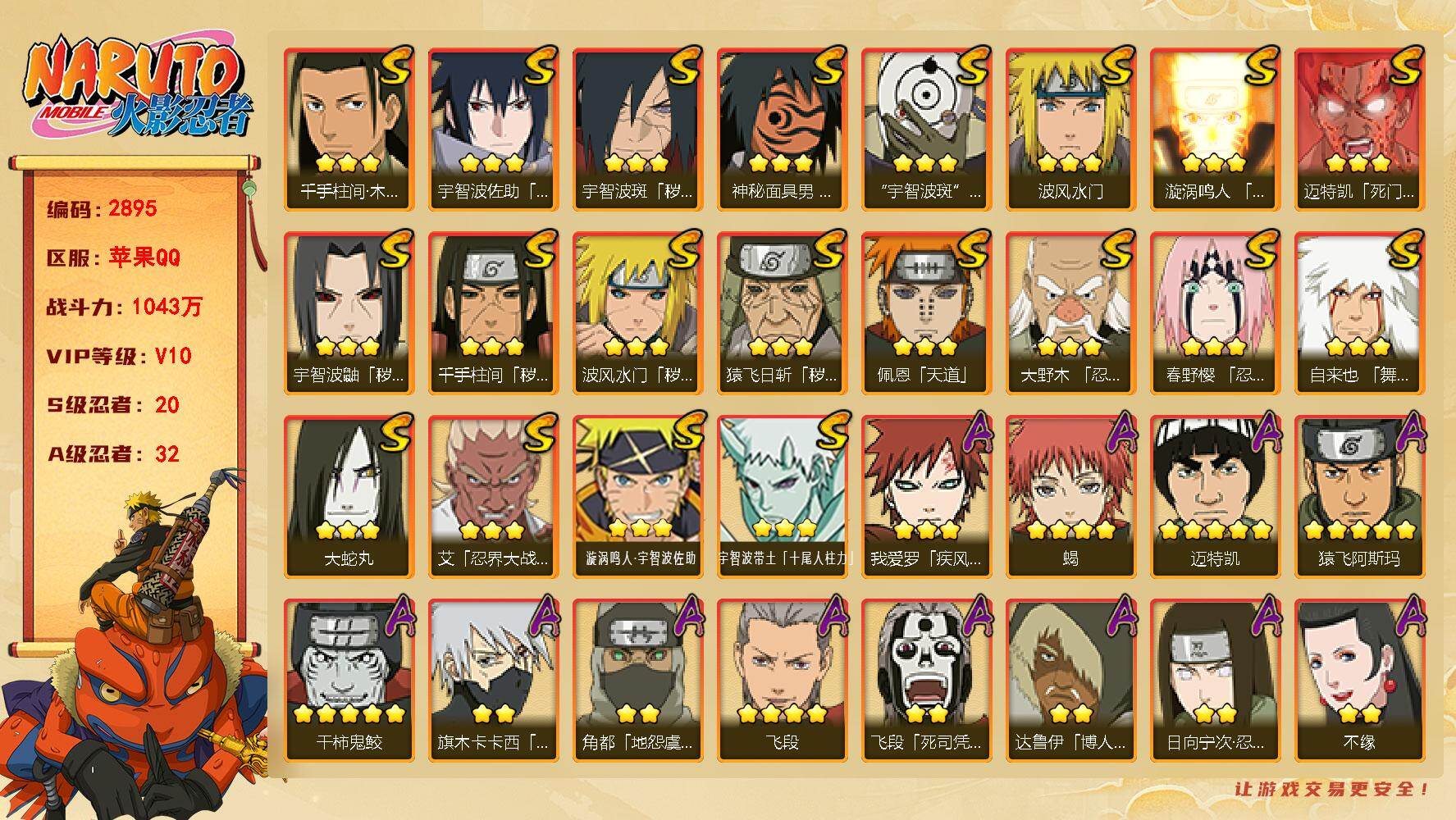 (可免费转苹果)v11,821w战力,17S级忍者数-42A级忍者数,有熊猫,