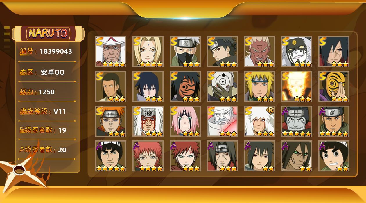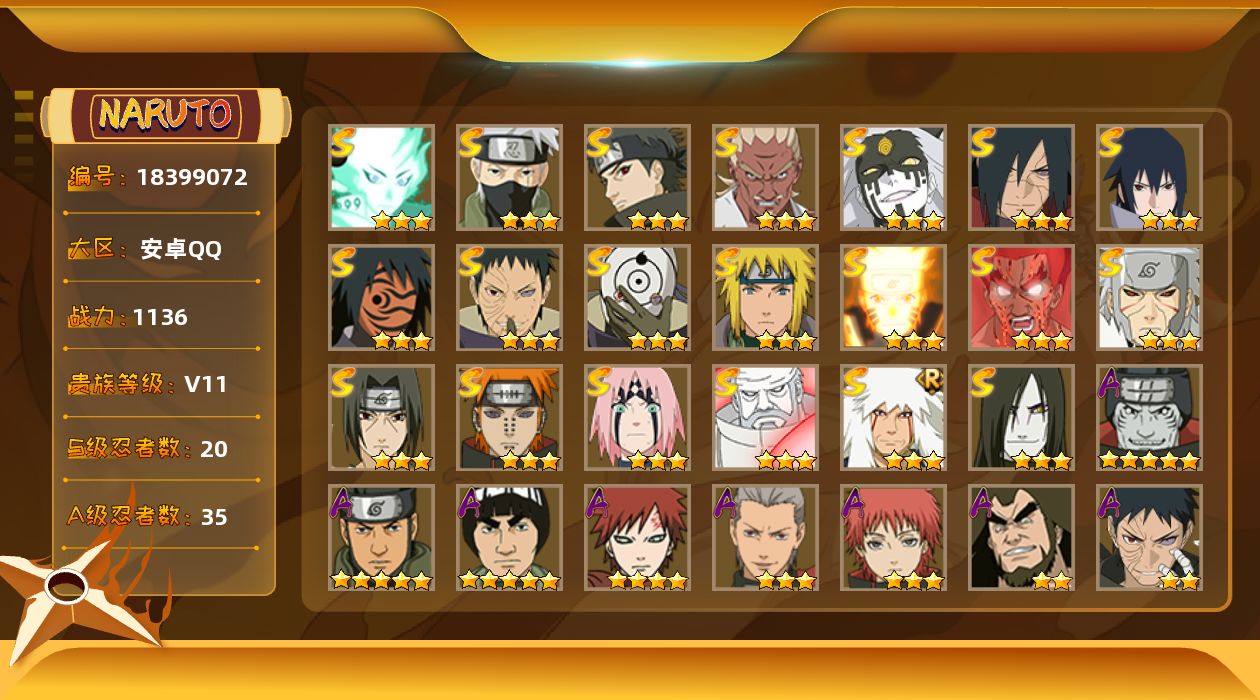 安卓qq/10千万战力超哥号/S忍者数:31- A忍者数: