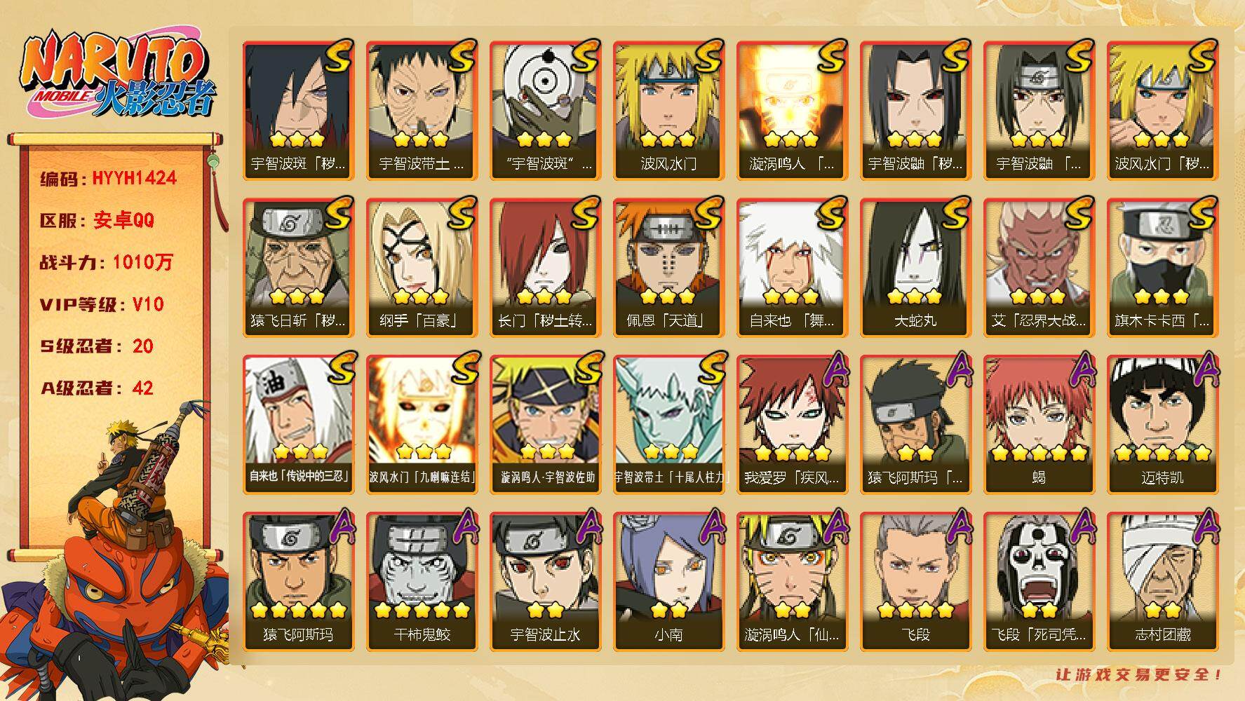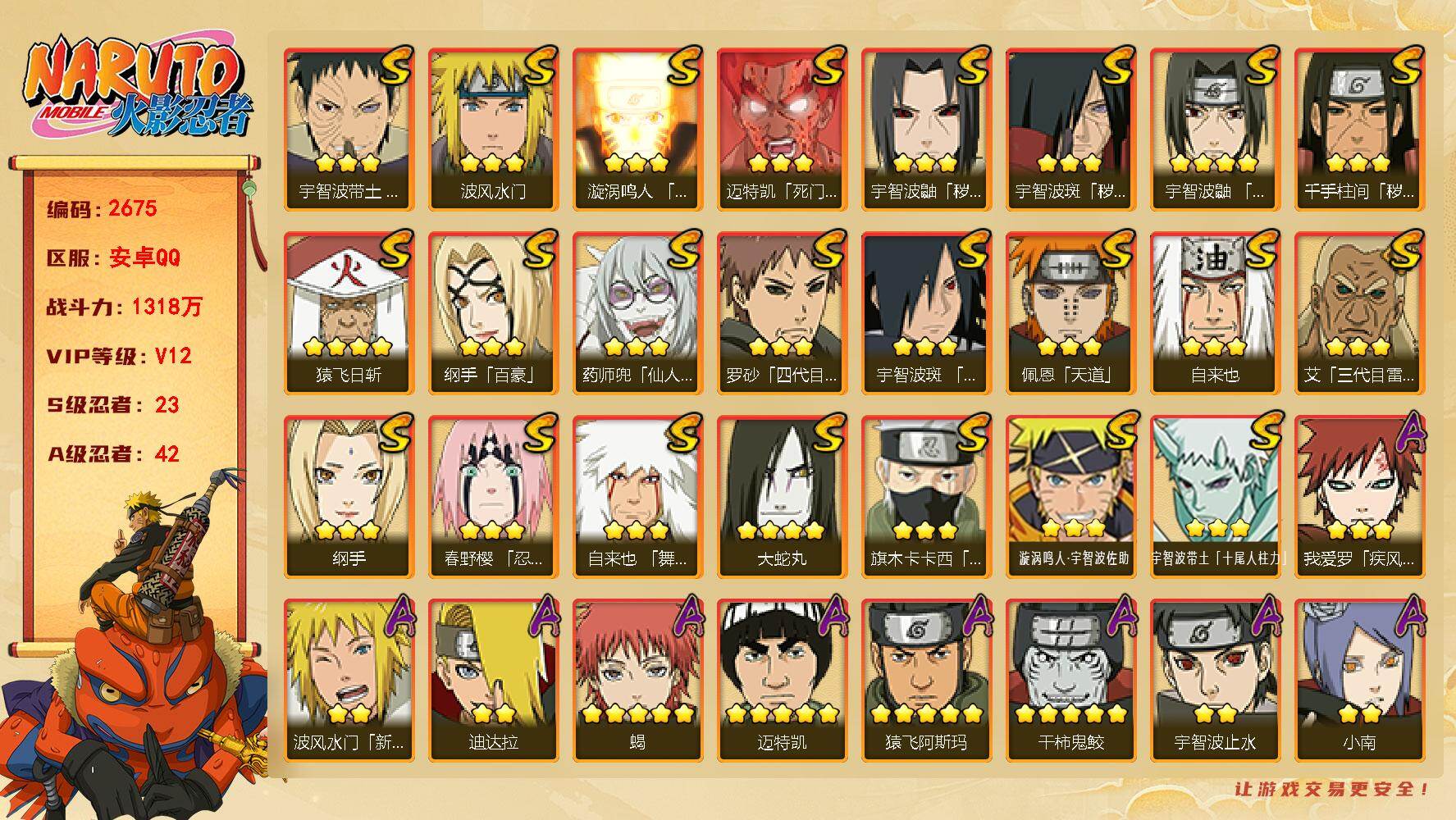 可免费转苹果 V12 1318万战力 23S-42A 有熊猫 永恒佐助46片