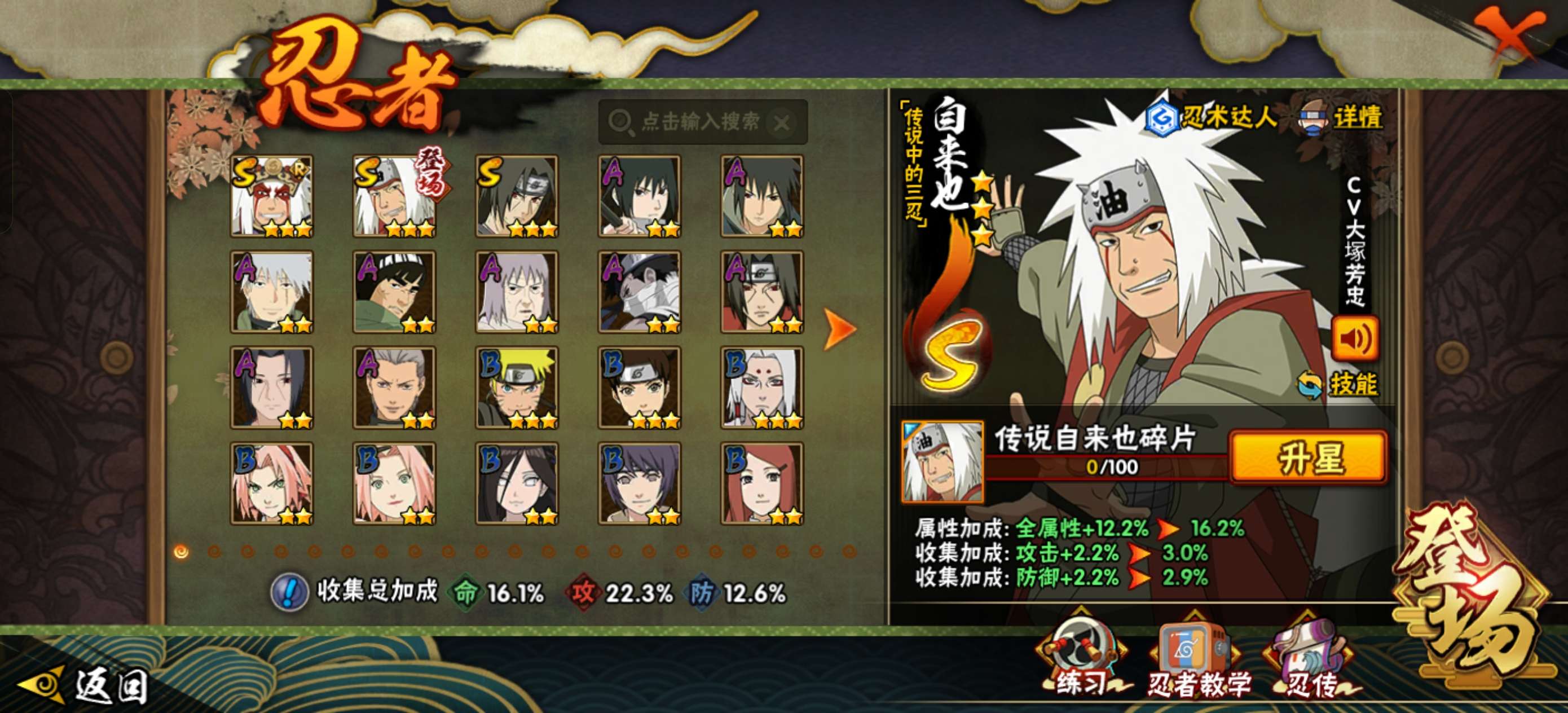 V11 31S忍 36A忍 21通灵 1660W战力 金币1.7万。大野木4