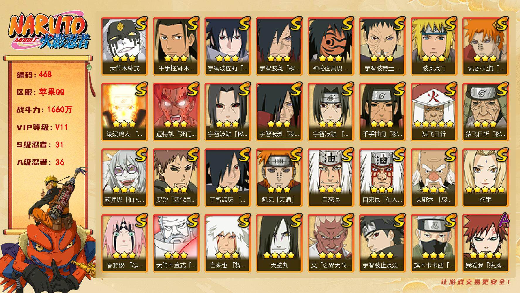 苹果QQ🔥总计400抽 3S+6万金币🔥豪杰自来也s+水门s+佩恩s+金币 6W+20高招卷🔥