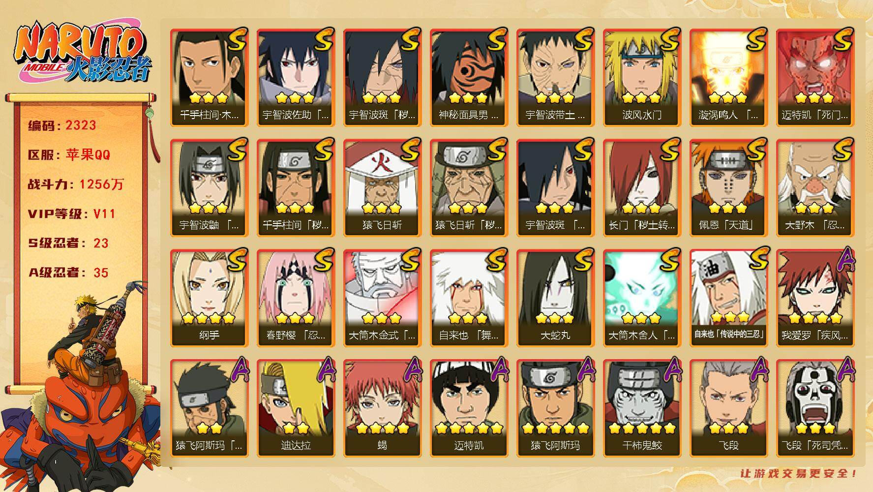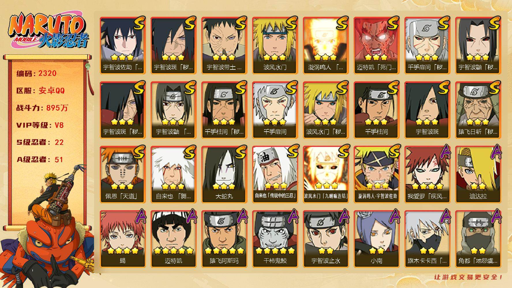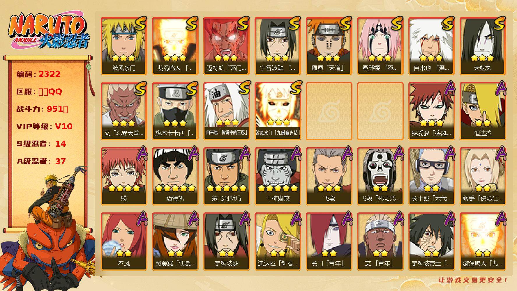 安卓qq/可二次/免肝成品号/198忍者3个/S忍者数:1