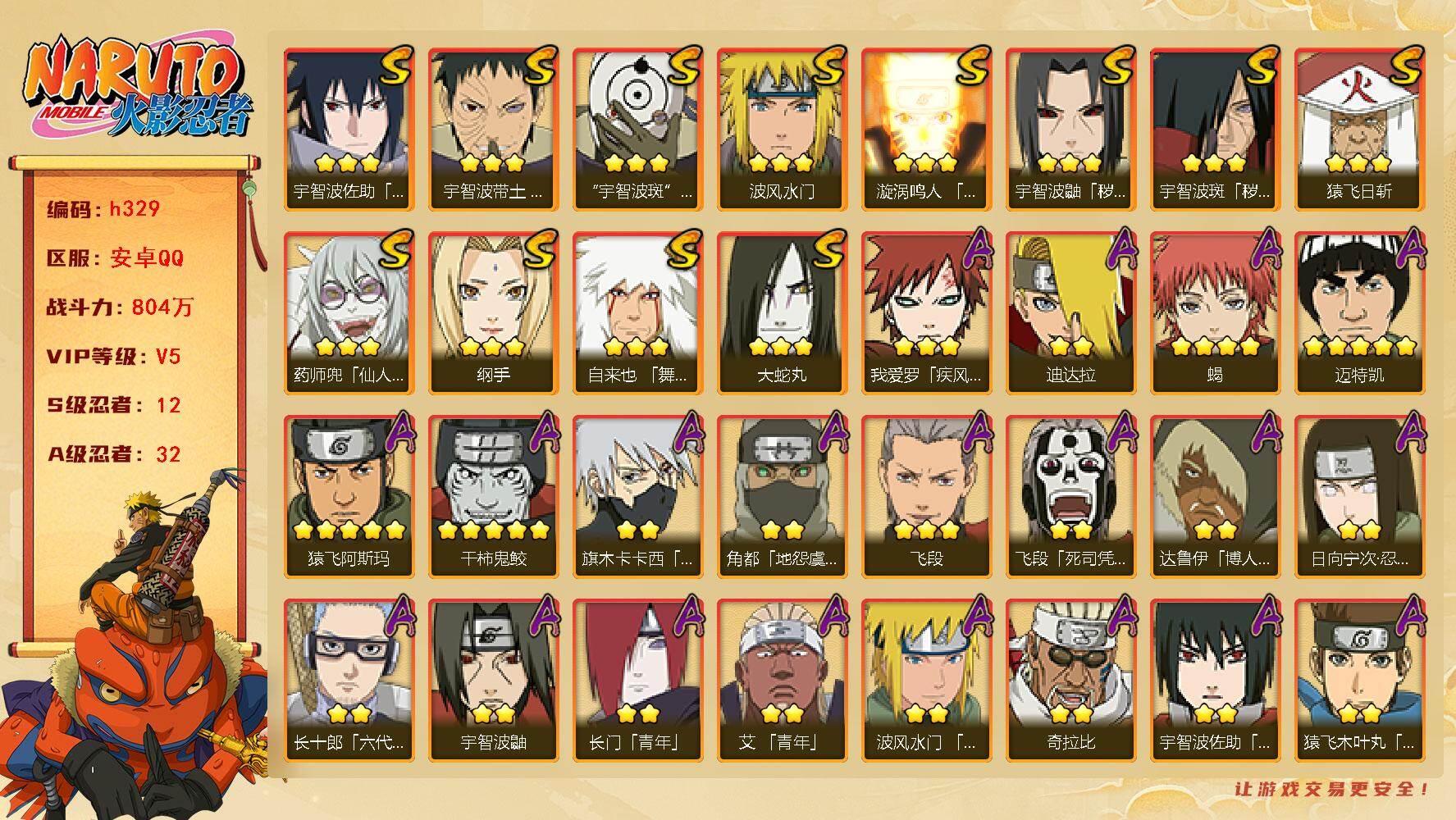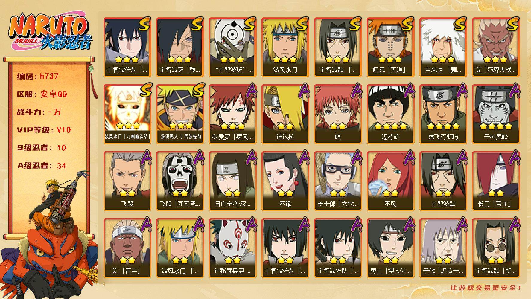 v6 13S 32A 880万战力 1万+金币 须佐卡卡西79片 zp3224