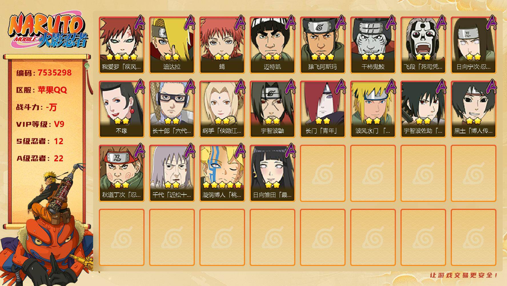 【苹果】仓鼠金币953号,82655金币,27张高招卷,蜀面自来也+百战鼬+百战