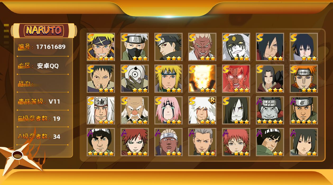 [17161689] VIP11,1021W战力,S忍19个,A忍34个