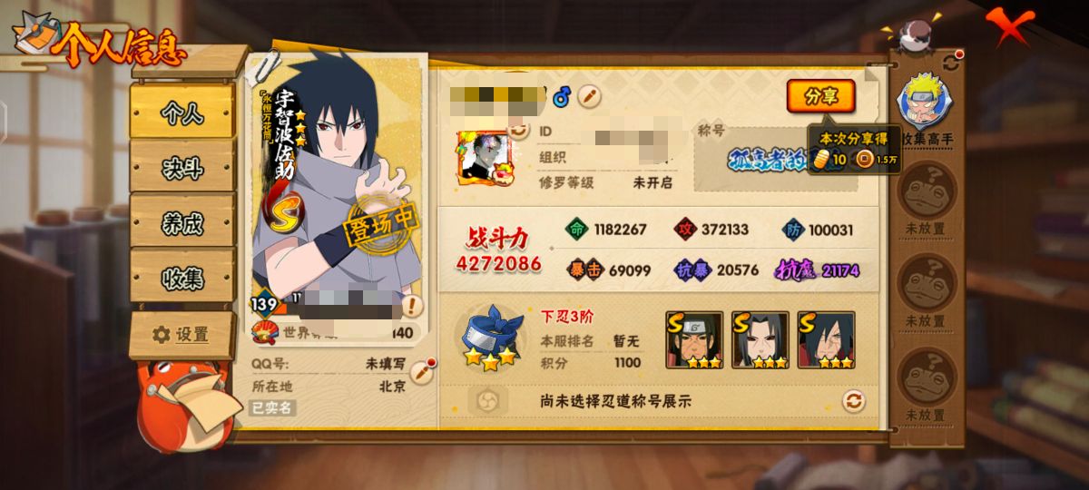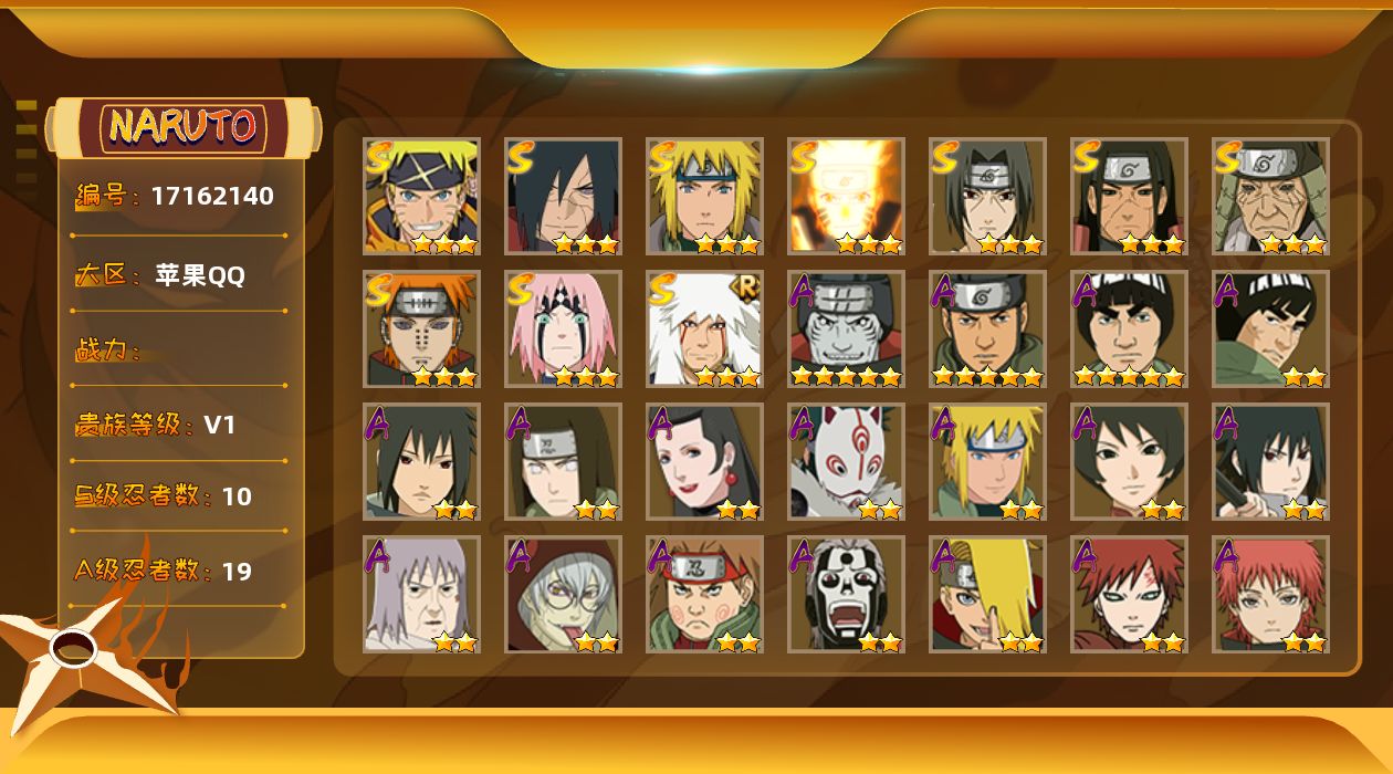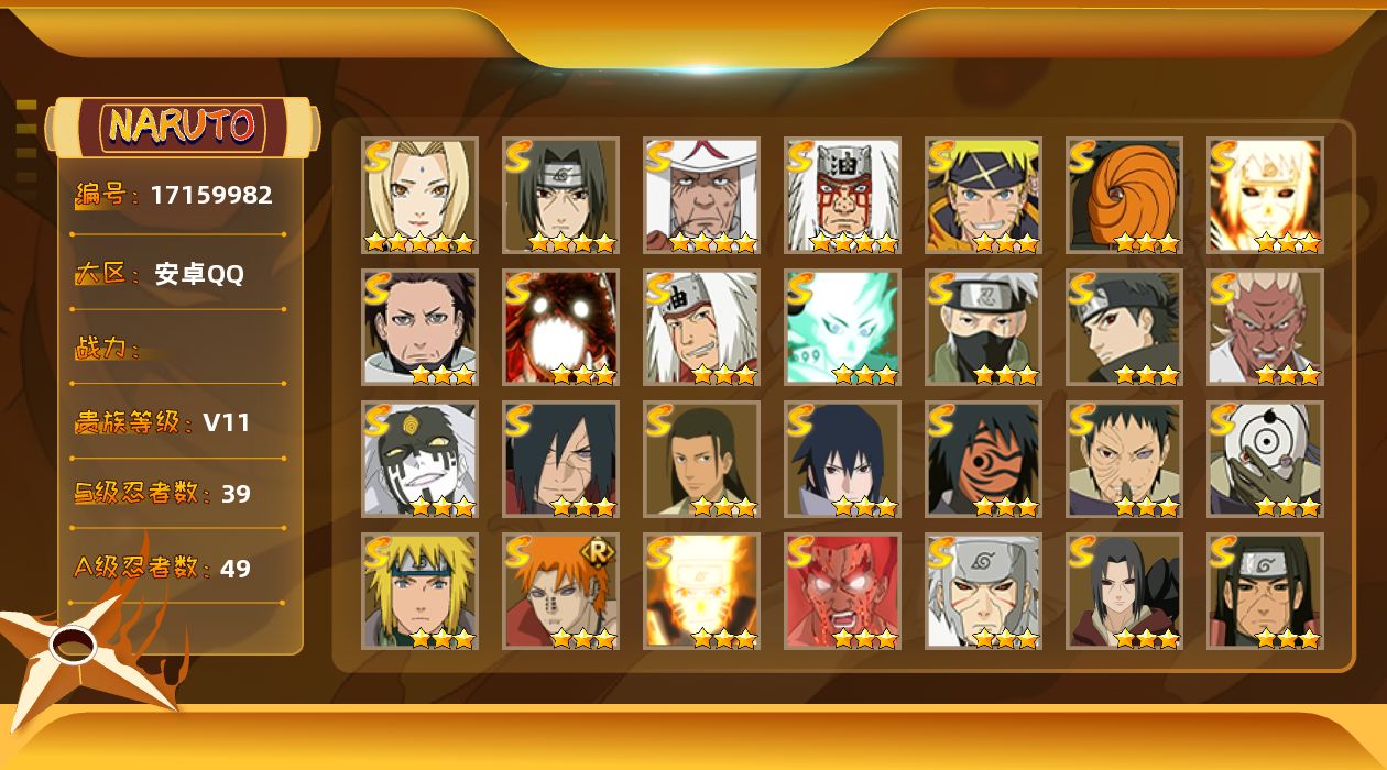 V8 511万战力 11S级忍者数-27A级忍者数 木叶创立斑50片 忍战大野
