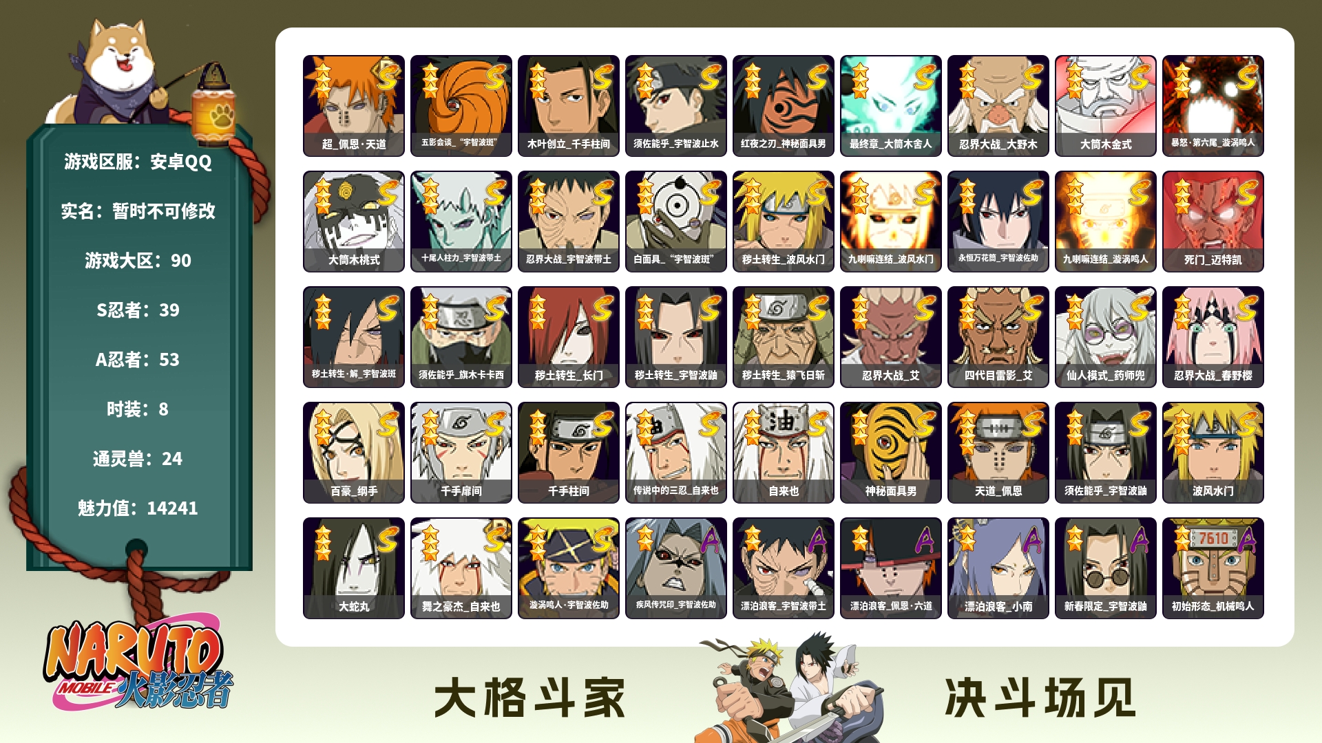 7S忍/13A忍/战力315W/V3/区服3815 【S忍者】宇智波佐助「漩涡鸣人」,宇智波斑「秽土转生·解」,宇智波带土「忍界大战」,自来也「舞之豪杰」,