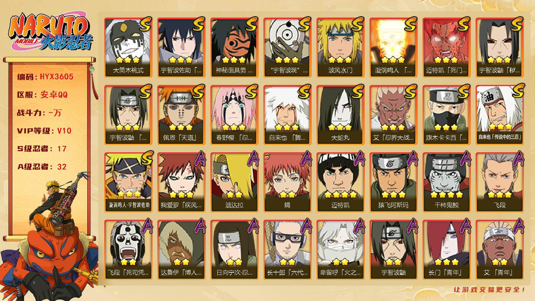 【HYX3605】V10/S忍17/A忍32/4星干柿鬼鲛/2星达鲁伊「博人传