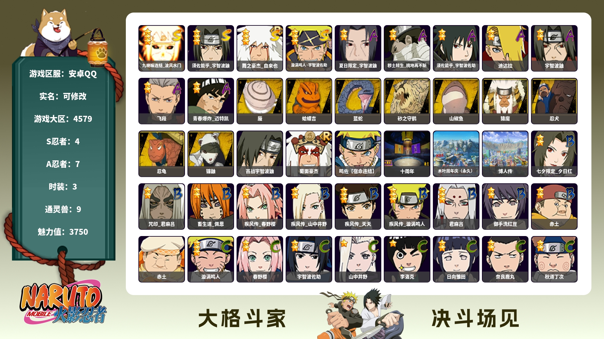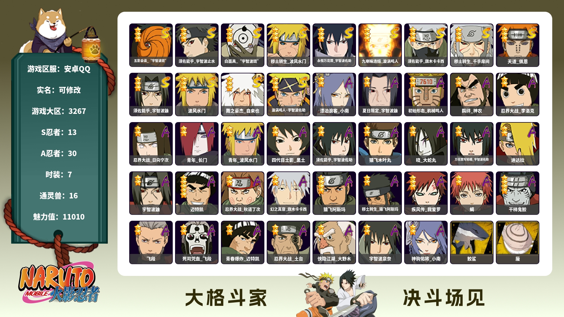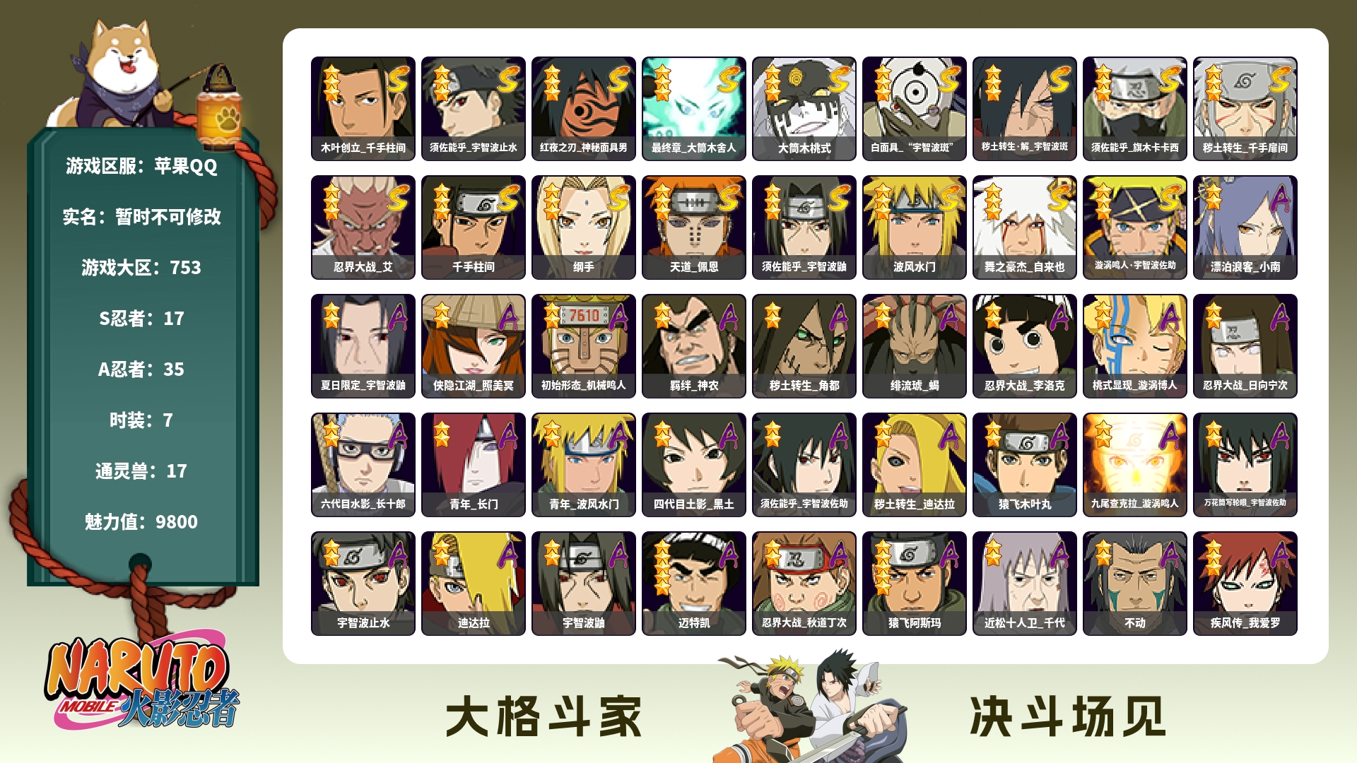 【苹果Q11S 十周年鸣佐】【区服】2993【等级】141【S级数量】11【A级