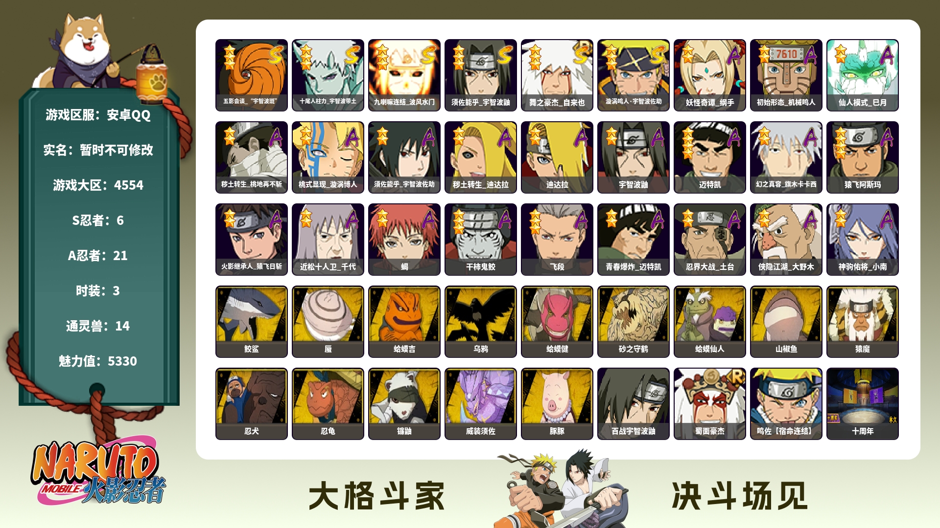 V11/战力654W/S忍14/A忍33/通灵兽16/新春限定