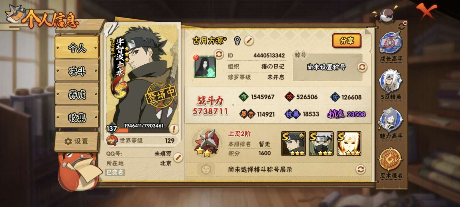 安卓QQ-可以二次-上忍-新手入坑首选小号-宇智波佐助「永