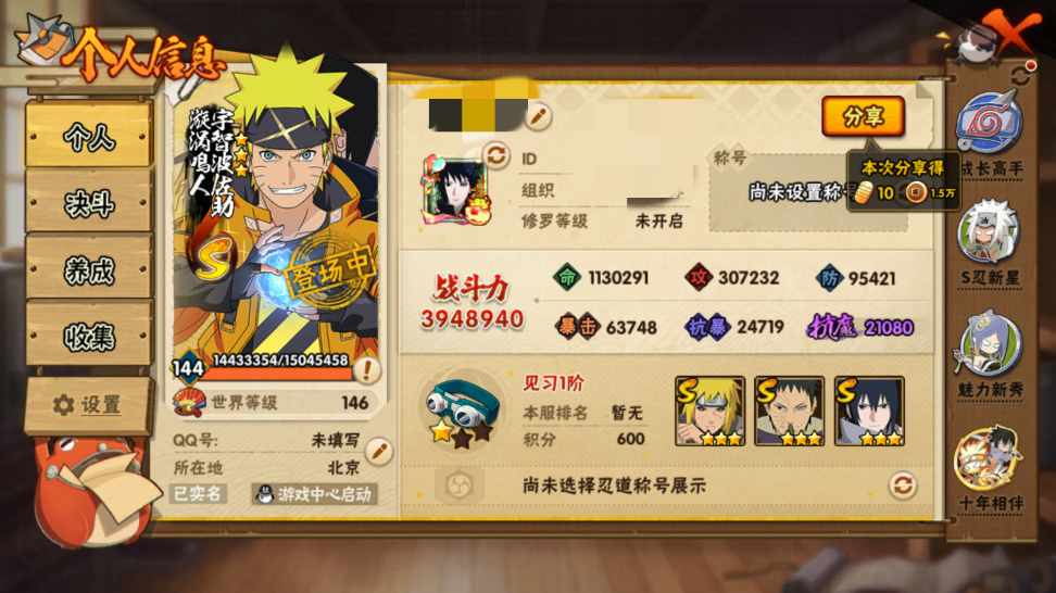 安卓QQ-新手入坑免肝首选号-S忍者数:4- A忍者数:2