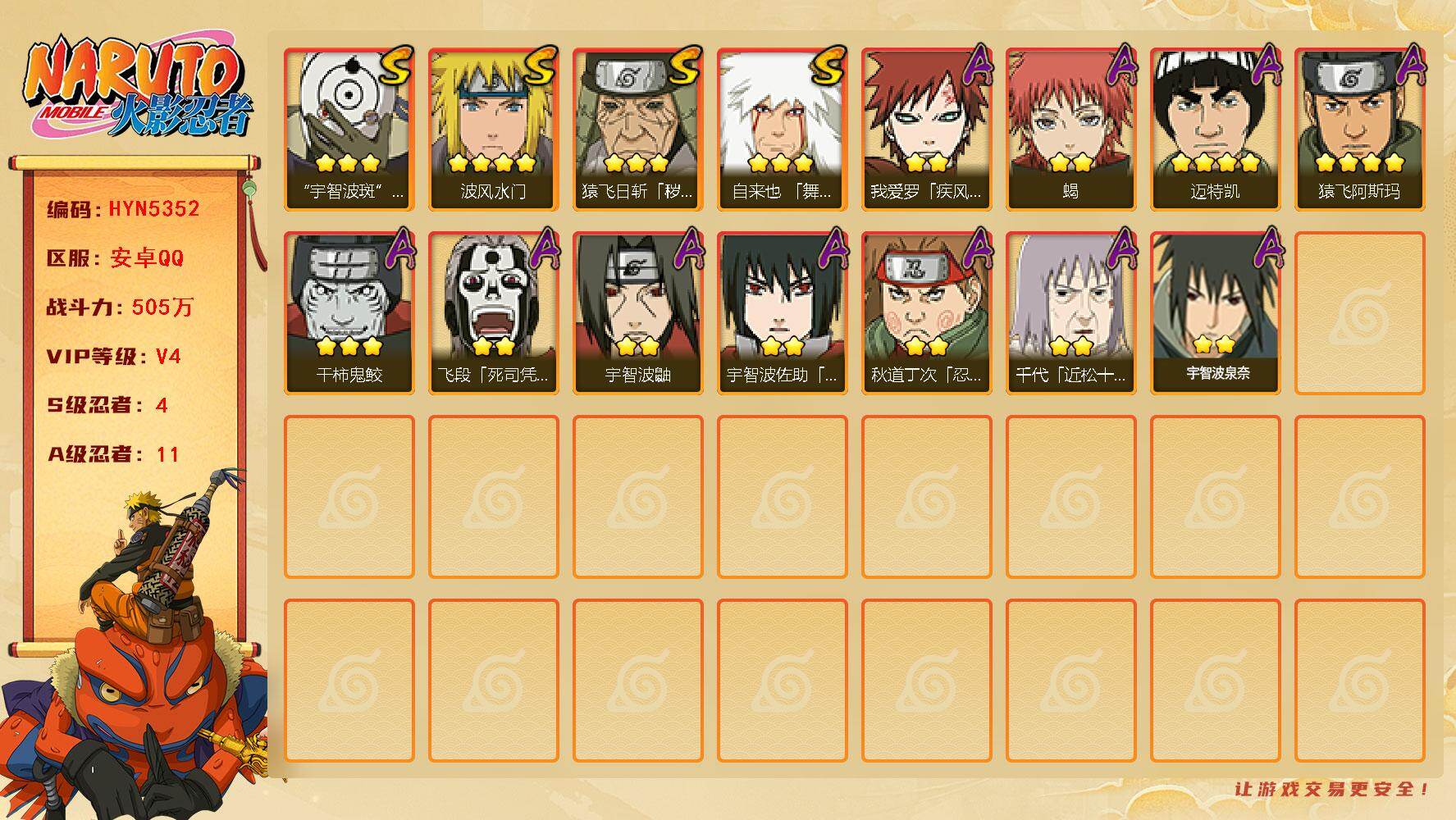 安卓QQ-可二次-v10乱氪号-S忍者数:8- A忍者数: