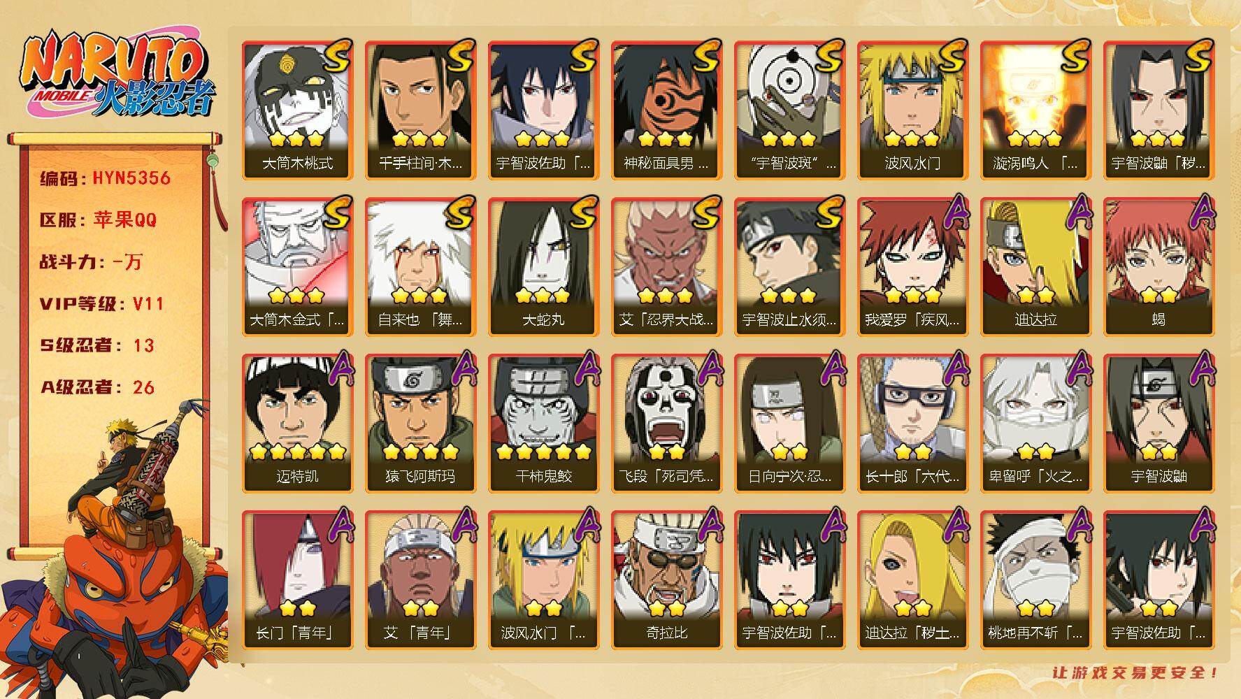 可二次【S忍者9 A忍者13 通灵13】【苹果Q-151区-144级-V8-39