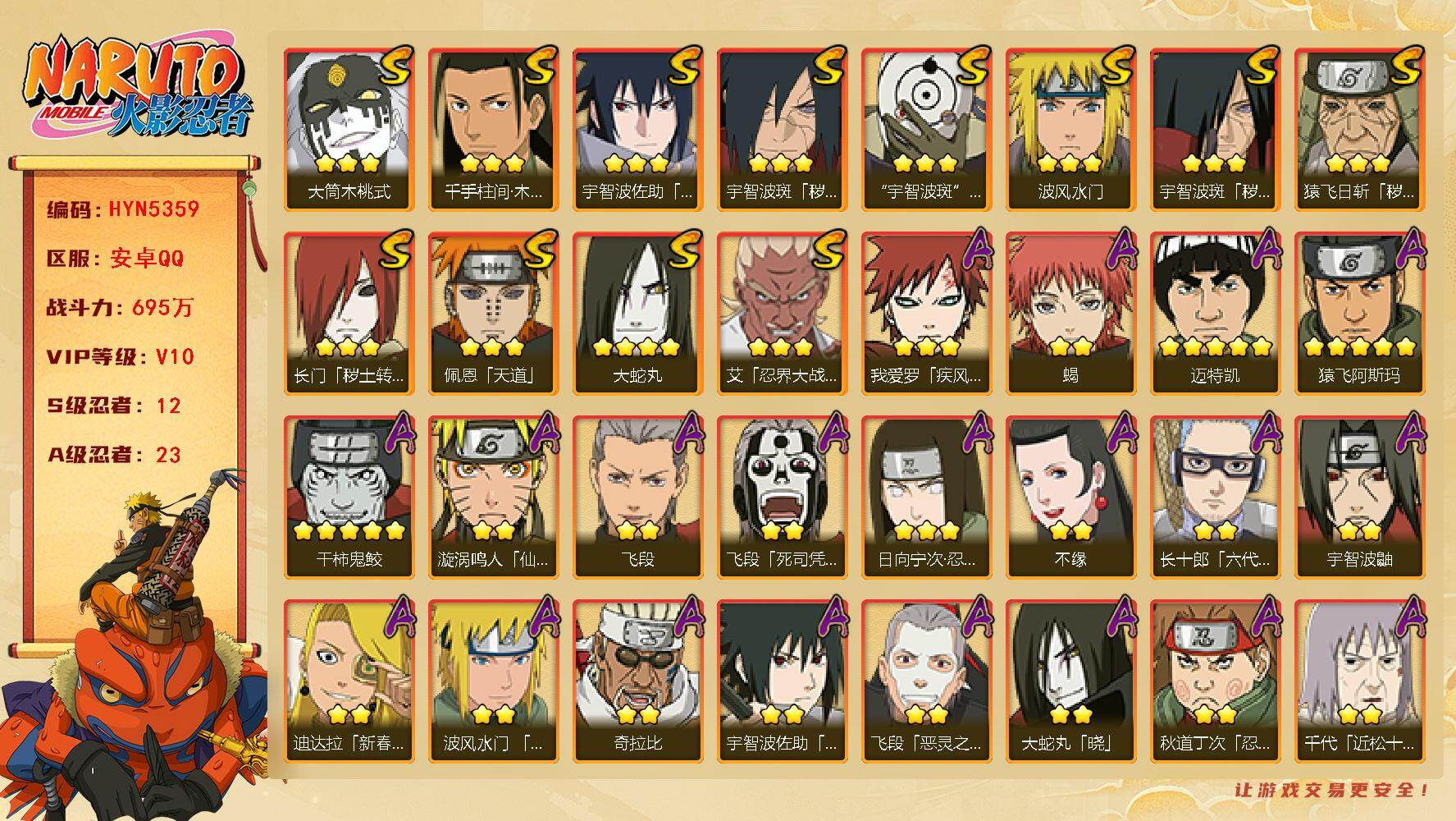 V10/战力695W/S忍12/A忍23/通灵兽15/秽土转生