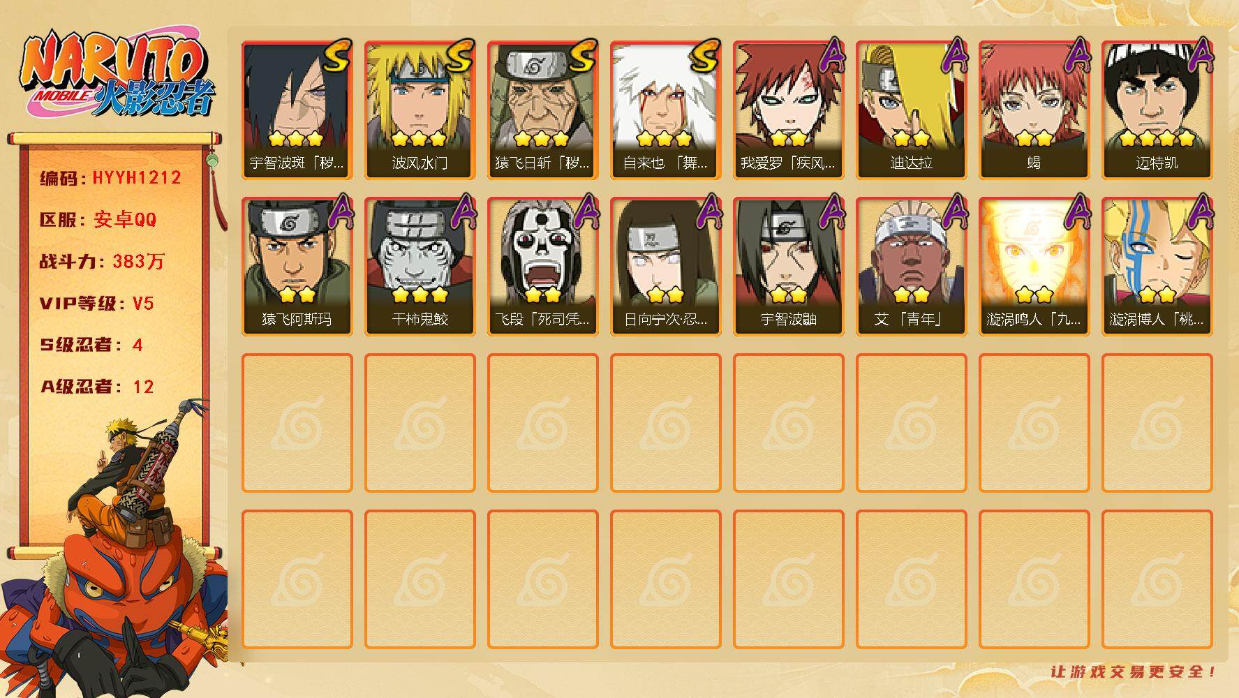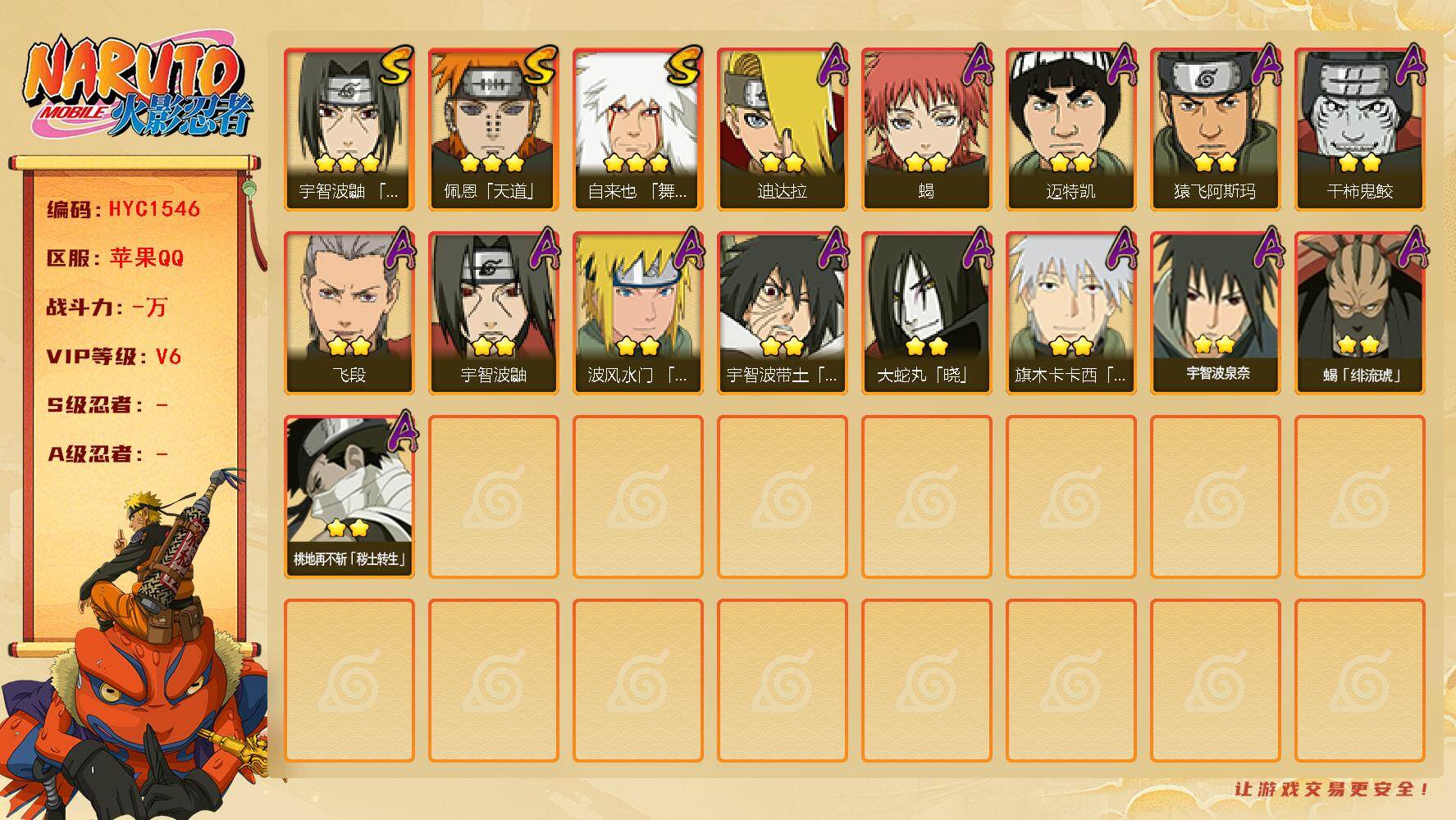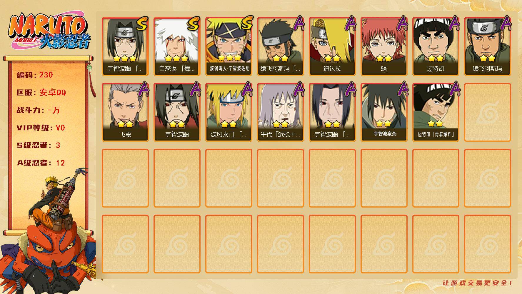 【S忍者6 A忍者19 通灵14】【安卓Q-3320区-136级-V4-366万
