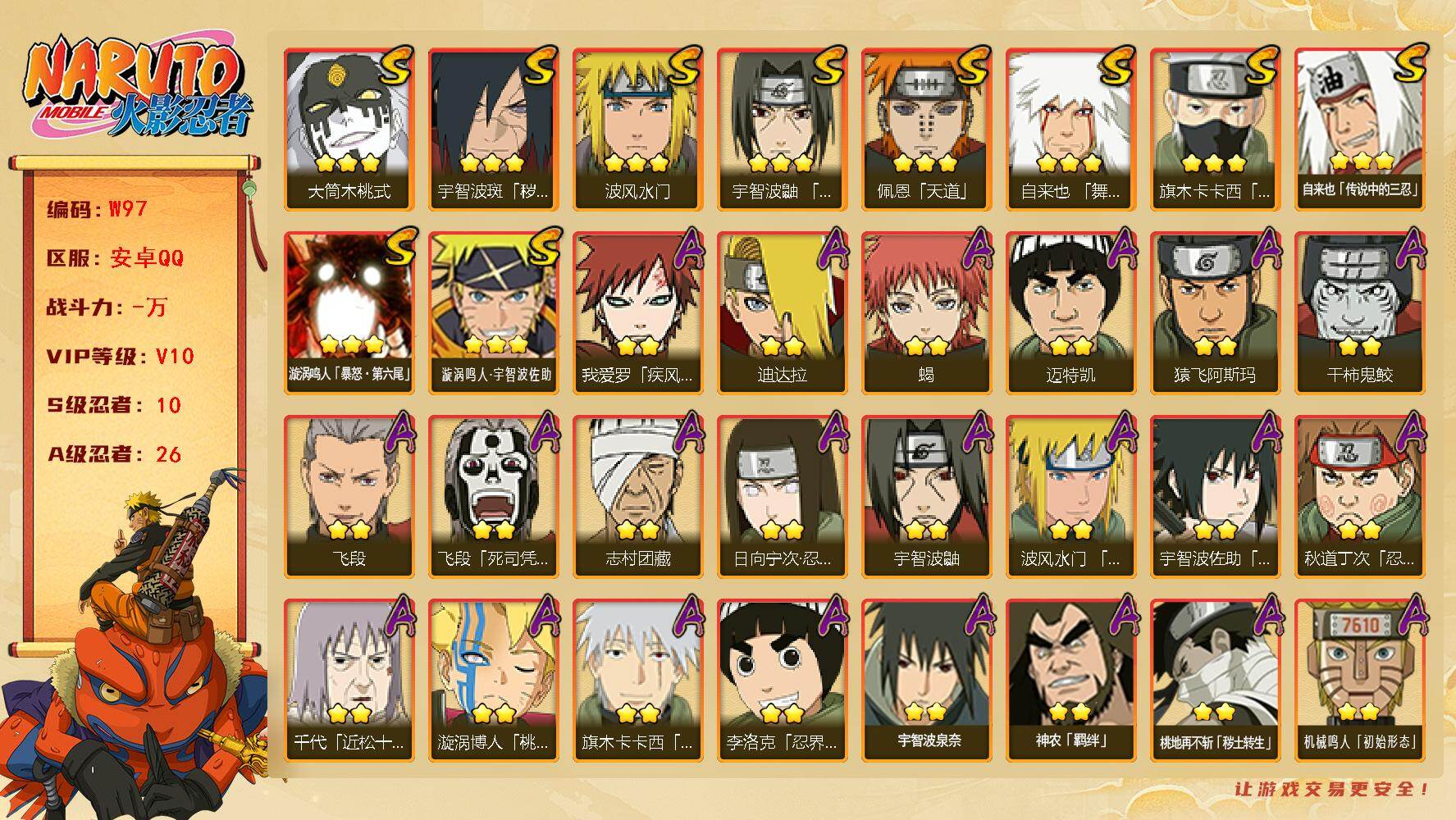 火影忍者手游号20s30a不议价,有意者来,和平王者瓦手连体号