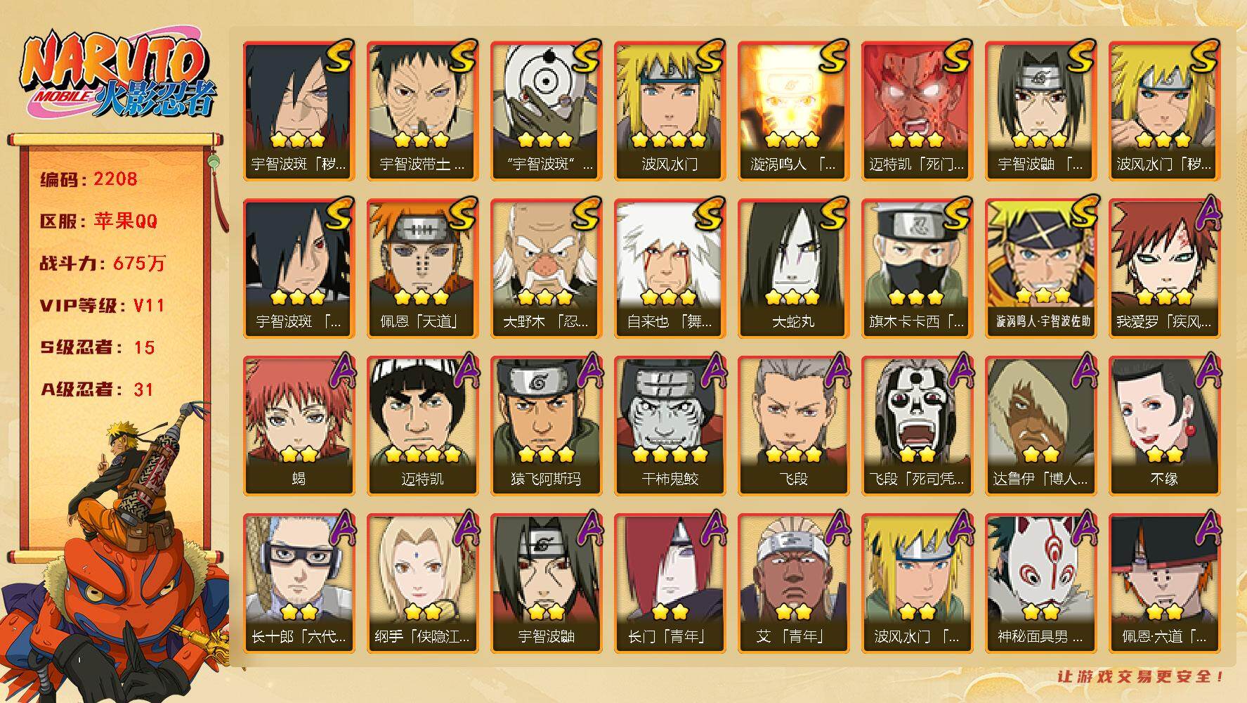 V11 675万战力 15S-31A 永恒佐助53片 红夜面具男90片 无79