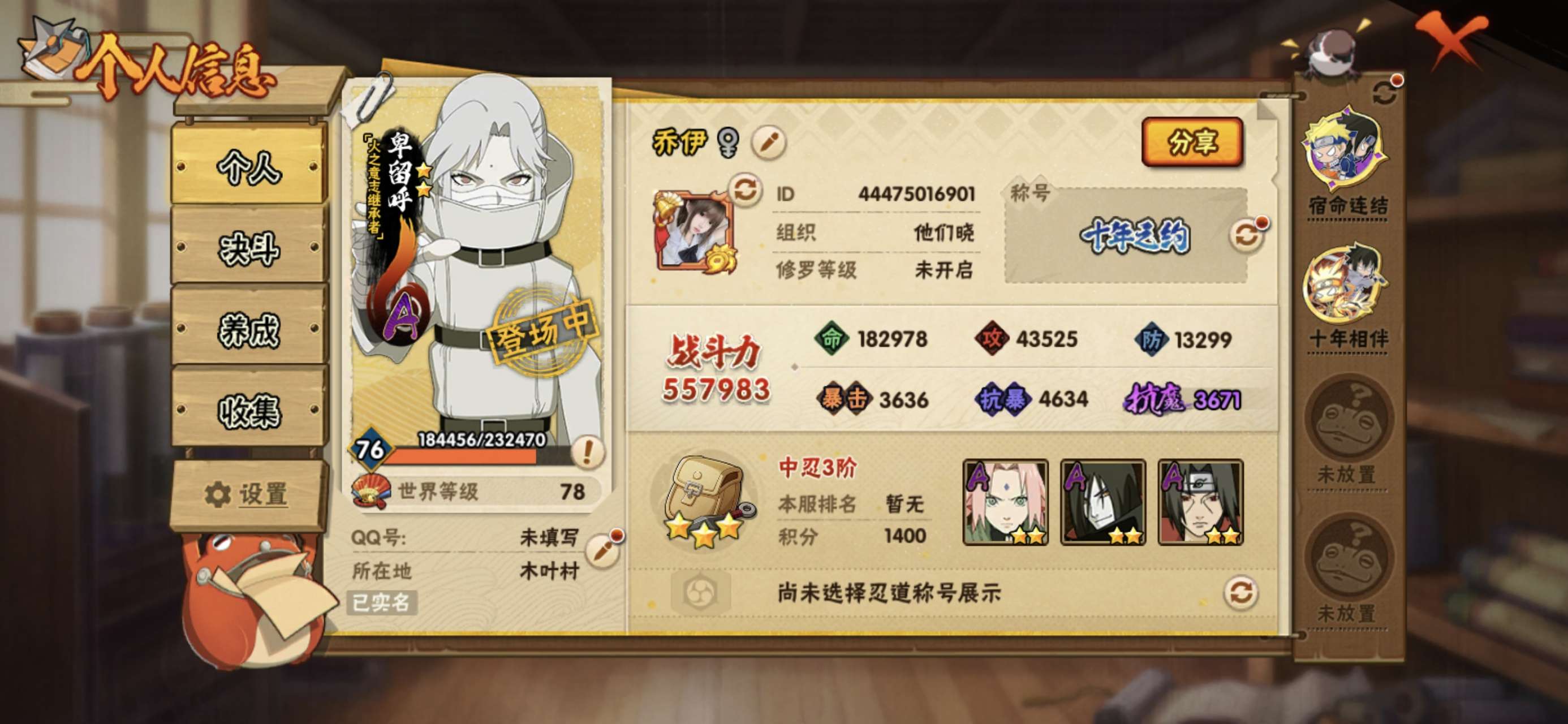 安卓QQ-可二次-全网最低v11捡漏号-S忍者数:5- A