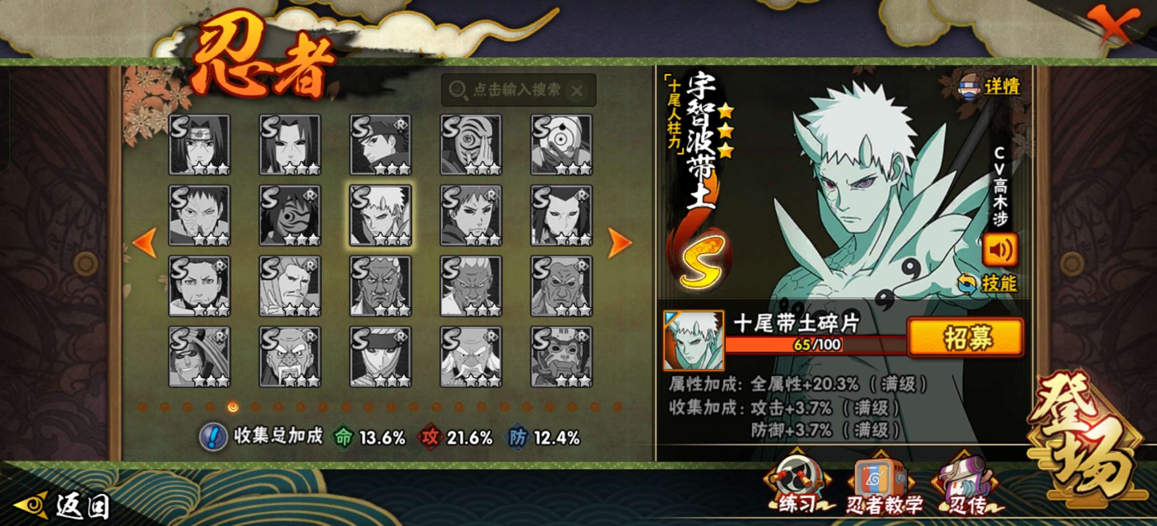 角色等级160 金币2000 战斗力1900万 S忍45 A忍67 5星S忍者44 12 段位暗部