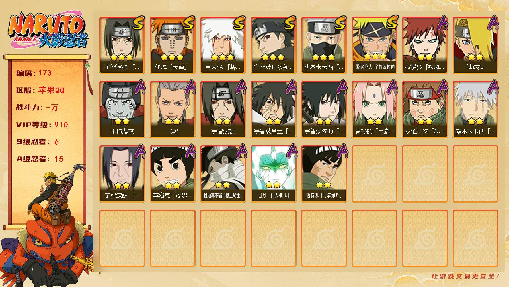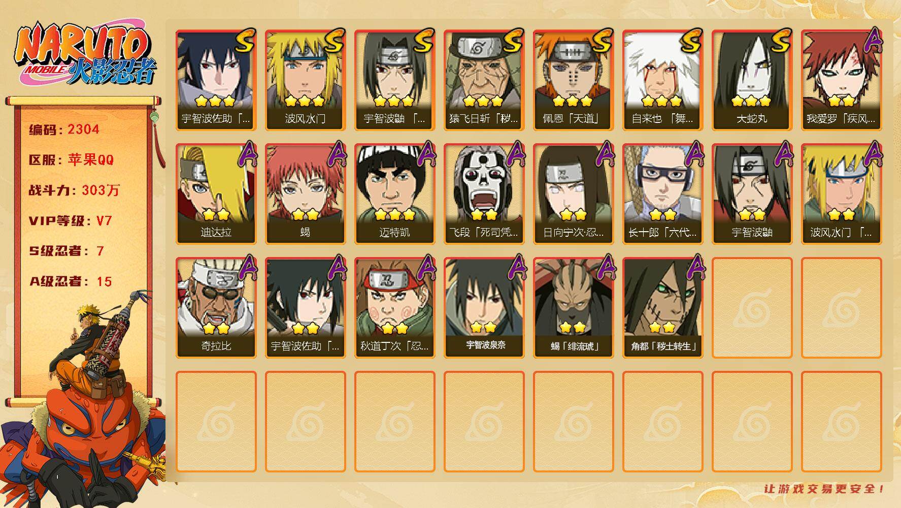 IOS/8S忍/27A忍/战力605W/V9/区服811 【S忍者】宇智波佐助「漩涡鸣人」,自来也「舞之豪杰」,大筒木舍人