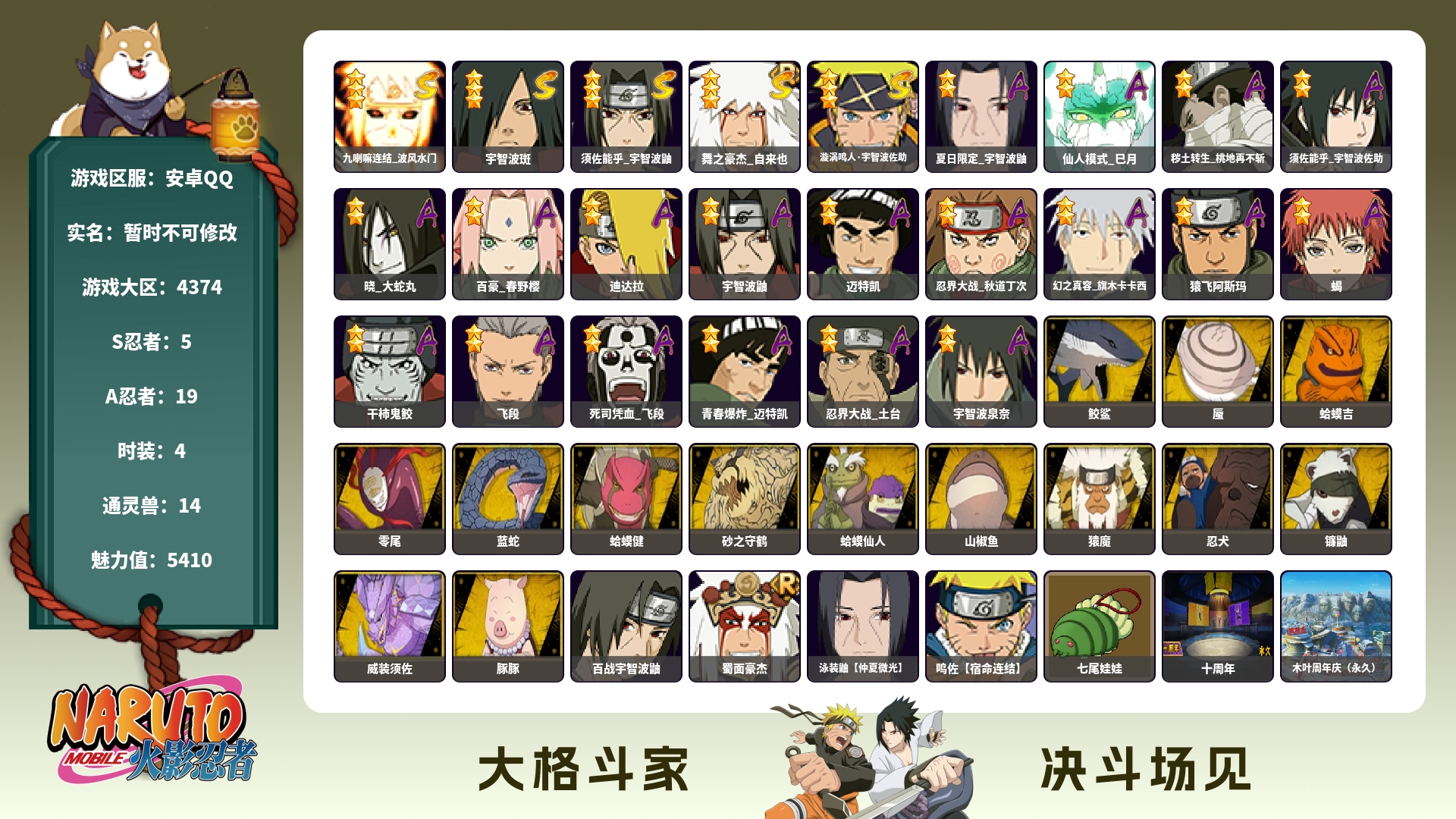 (可转苹果)410w战力+九尾水门+宇智波斑5S+夏日鼬1个