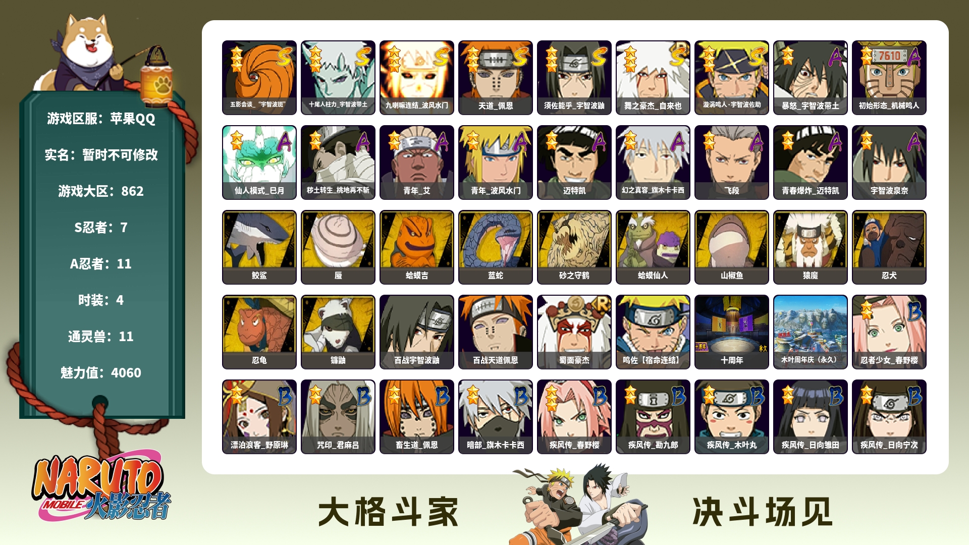 (可转苹果)459w战力金水六尾8s+咒印佐助19a战力45