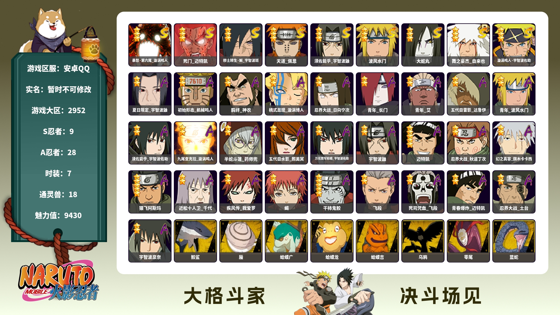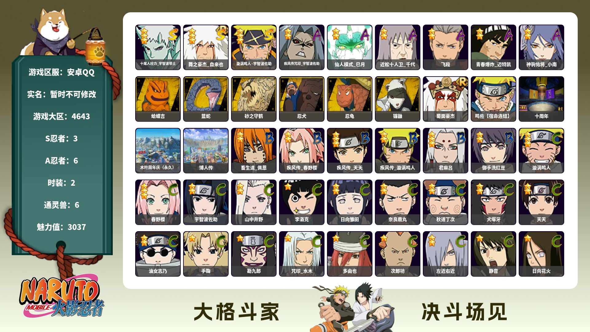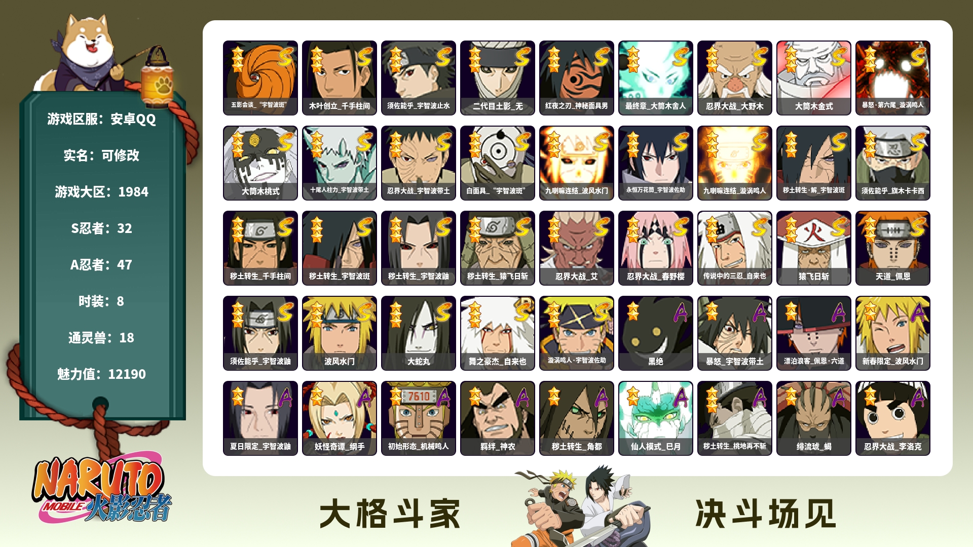 安卓QQ 47个S 新带土可以秒 2400万战有熊猫
