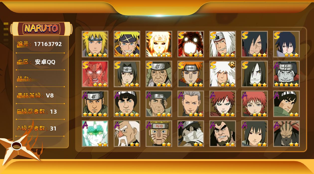 ✨2468万战力✨54S✨65A✨S第七班✨六尾鸣人✨须佐卡卡西✨仙自 传自✨百豪纲手✨死门凯✨金水