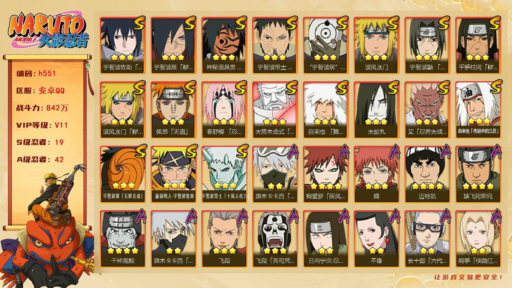 V11 1267万战力 21S-48A 有熊猫 卡卡西75片 忍战艾88片 秽