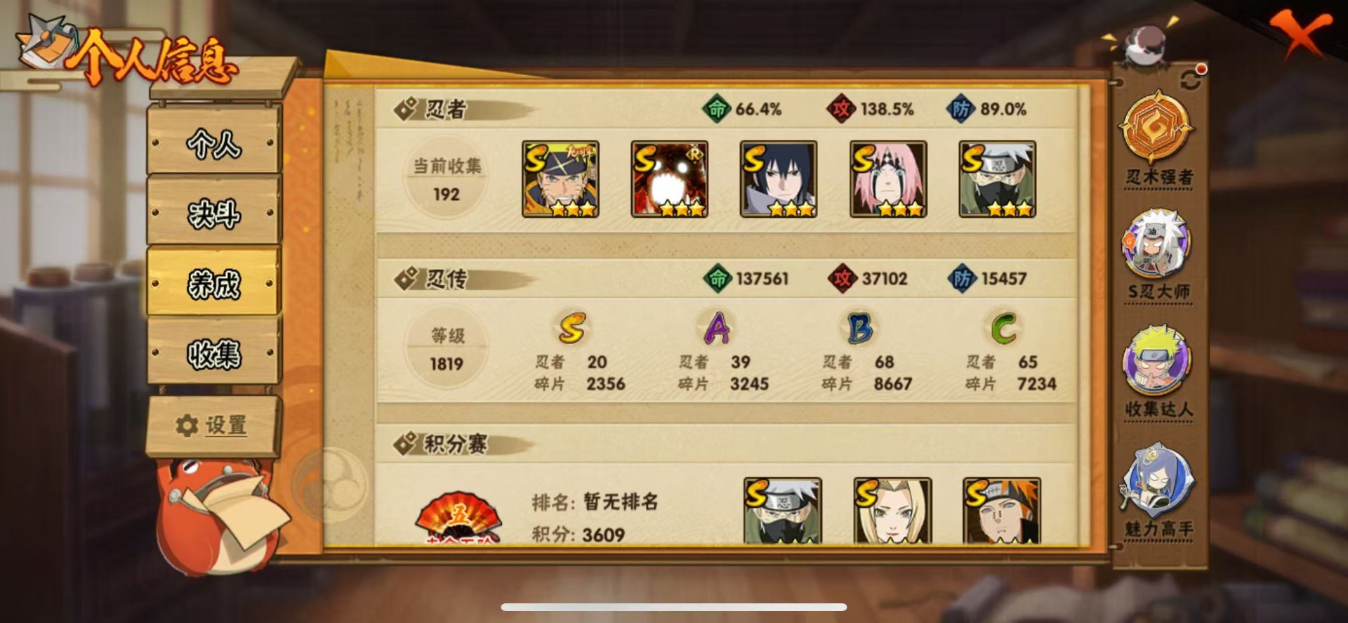 S忍数26A忍数31通灵兽数23忍者数186战力范围文本15 可小刀