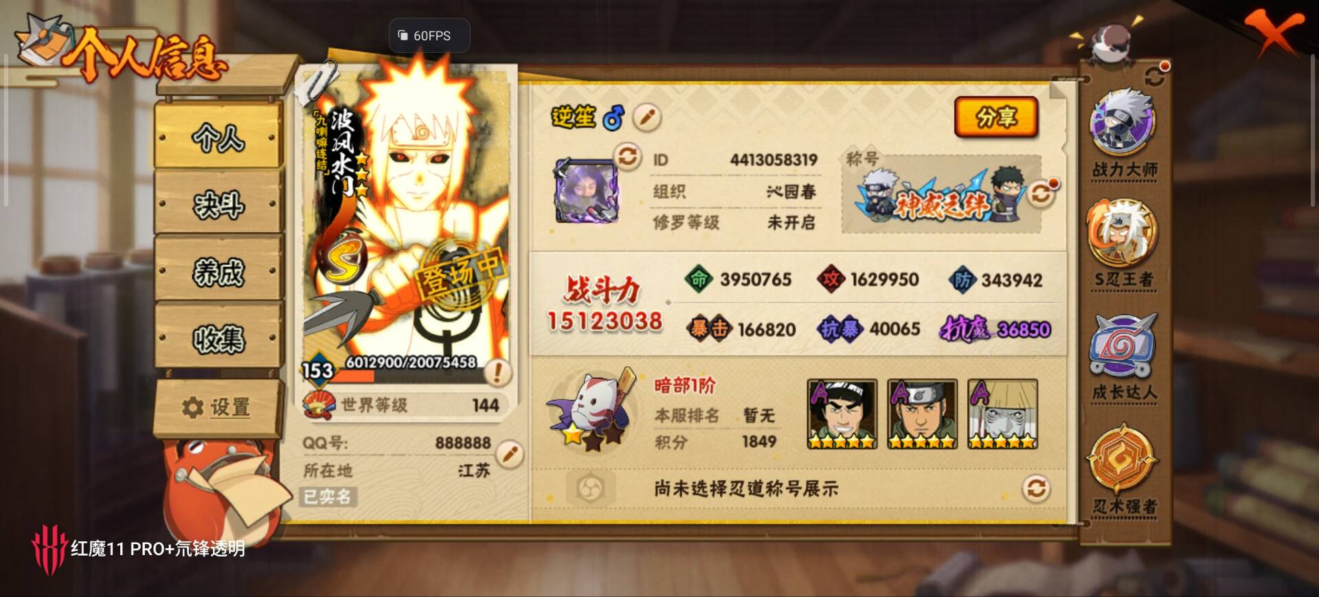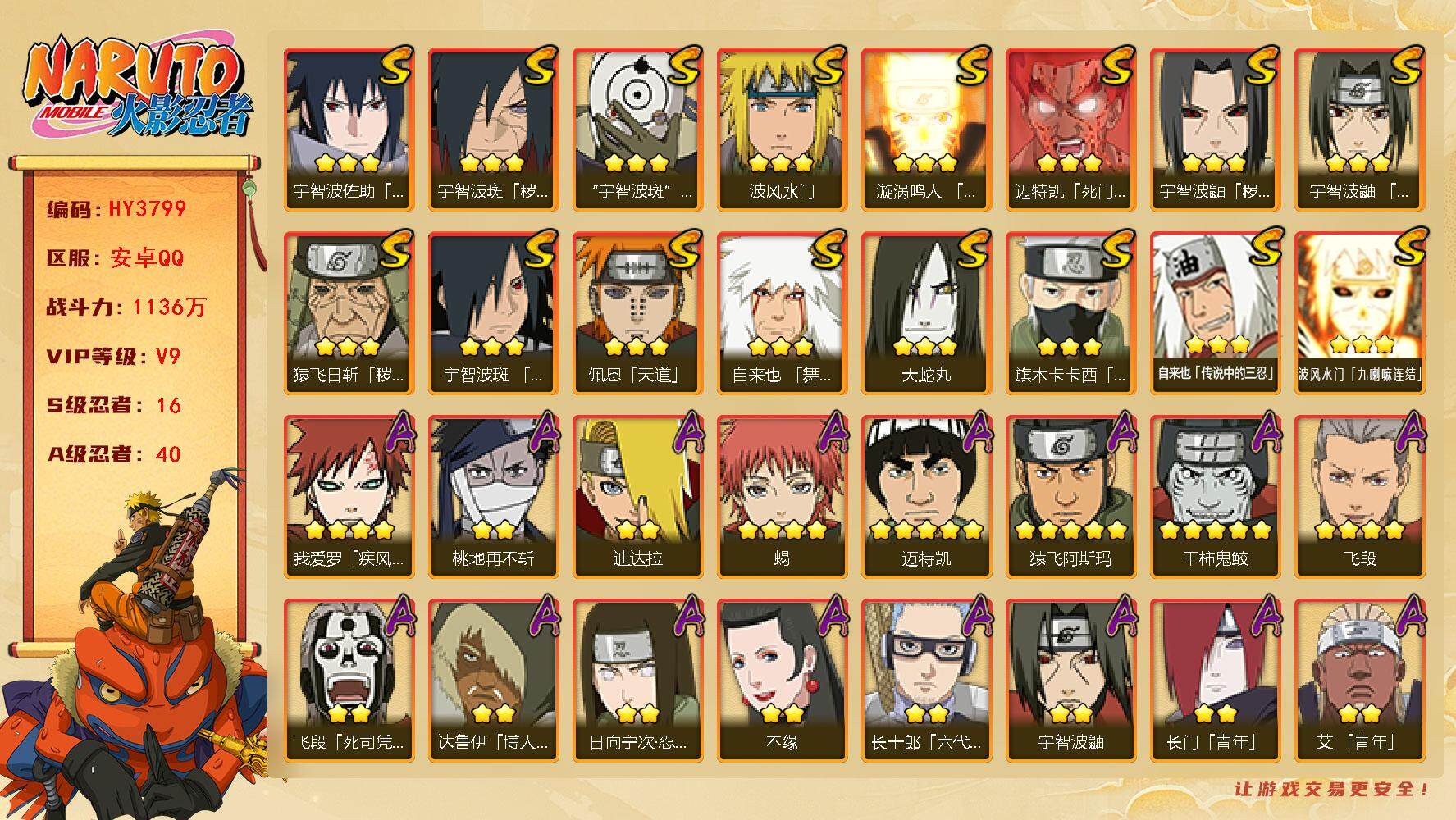 火影忍者【安卓QQ】V9/战力1136W/S忍16/A忍40/