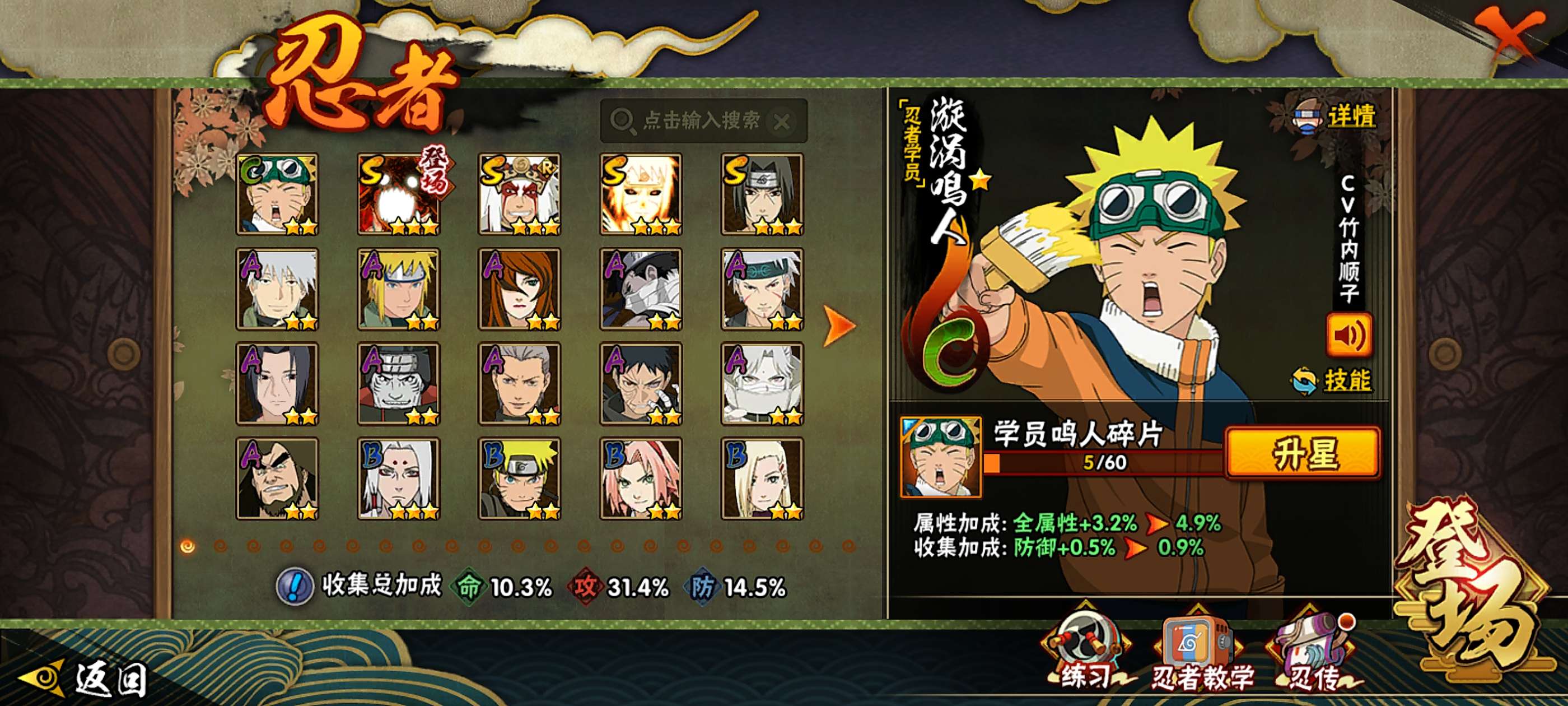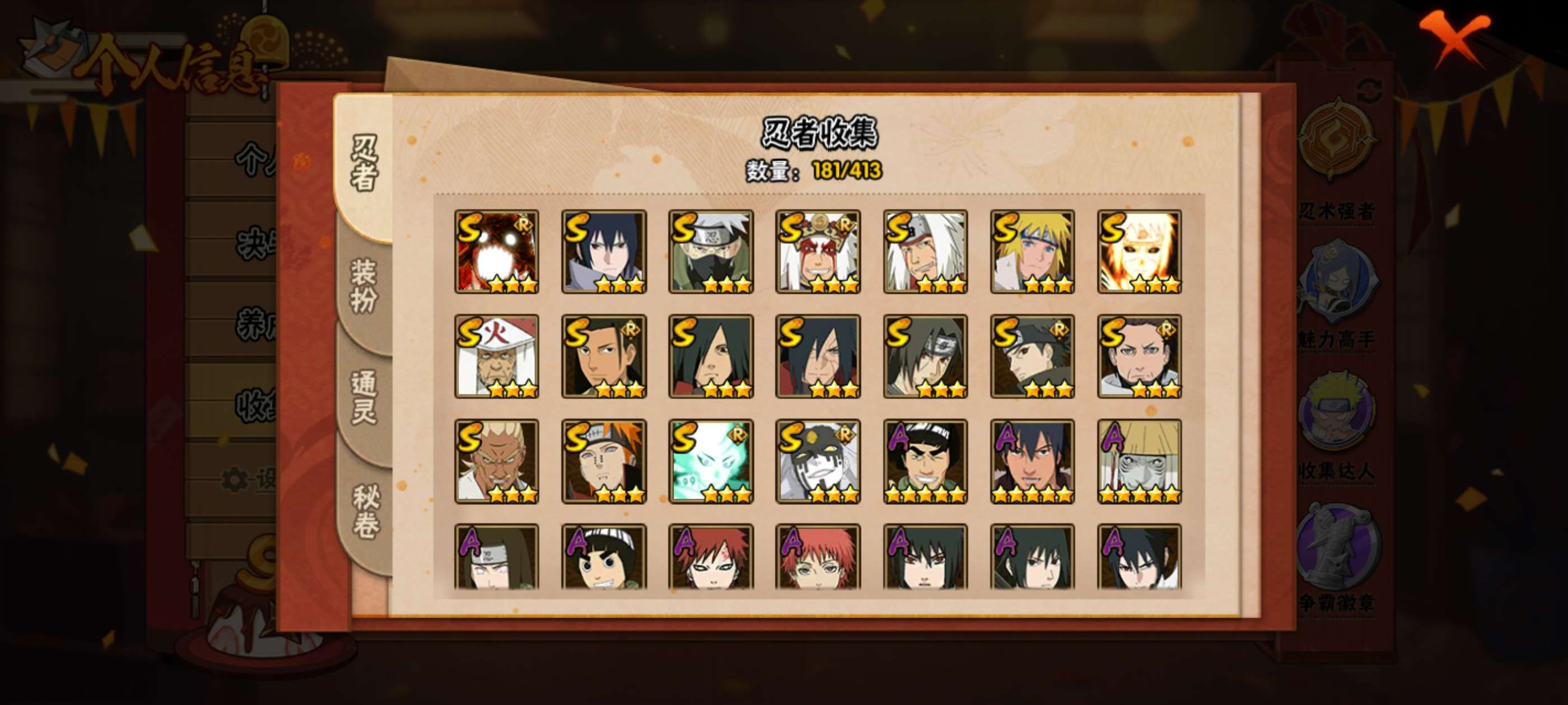 火影忍者【安卓QQ】36个S/44个A,还有28000金币,52张招募卷