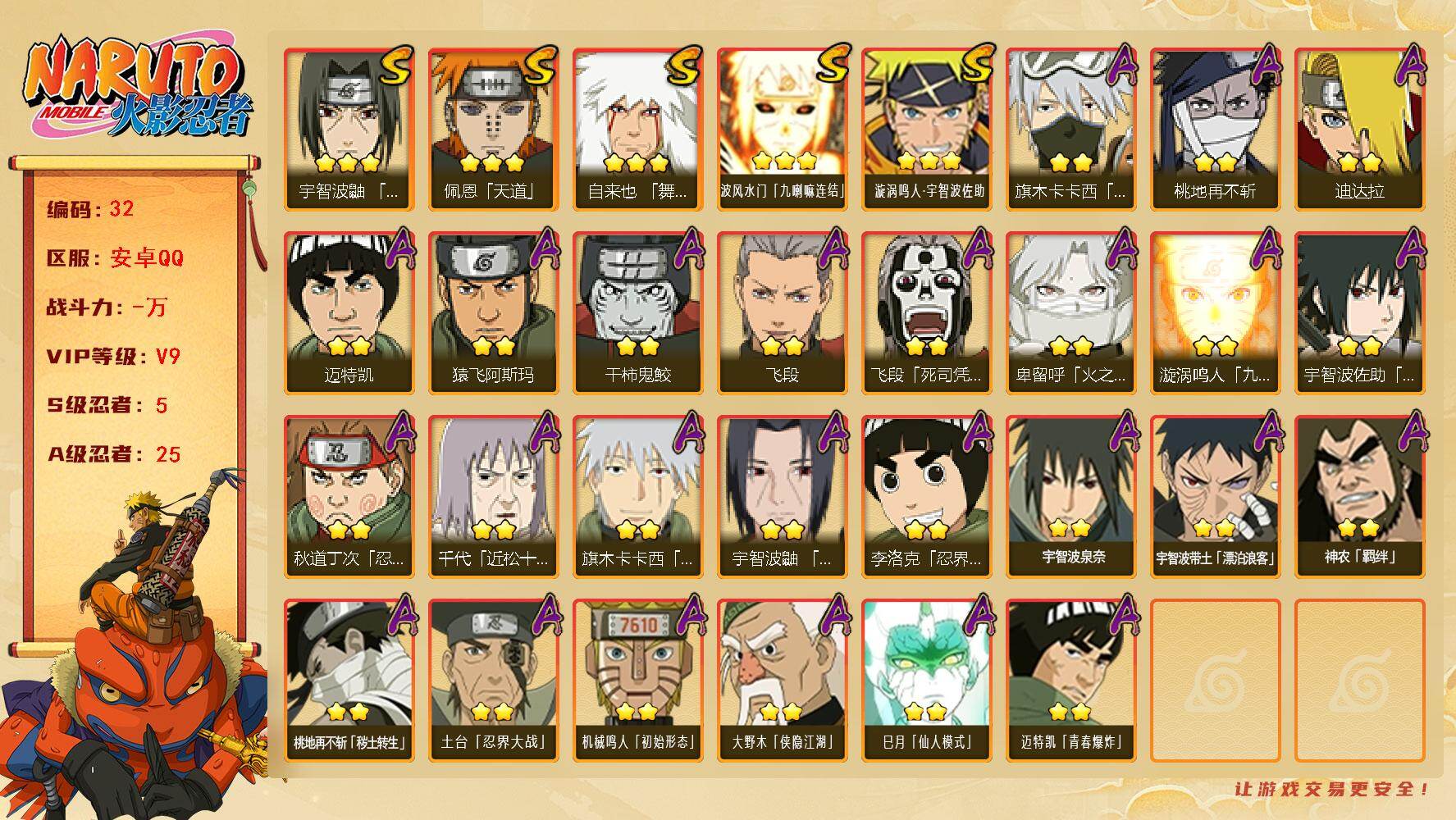 安卓qq/可二次/免肝微氪v9账号/298忍者1个/S忍者