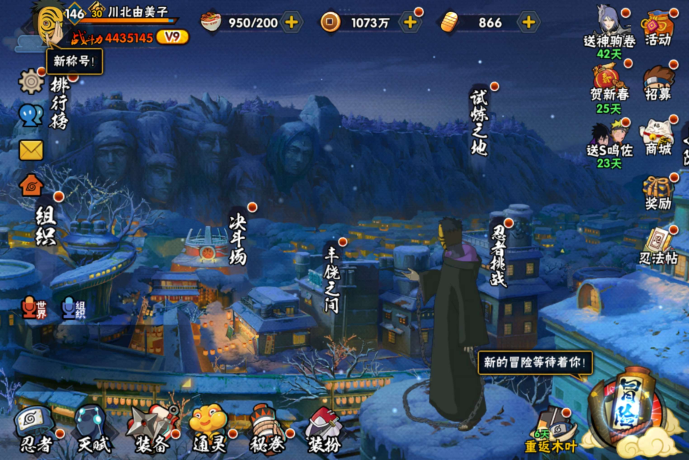 实名: 可修改 贵族等级: V3 S忍数: 4 A忍数: 12 S级忍者: 宇