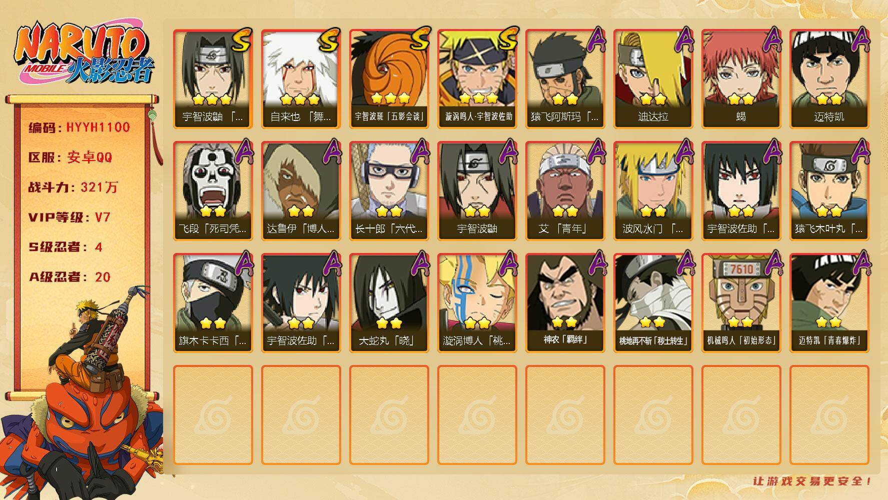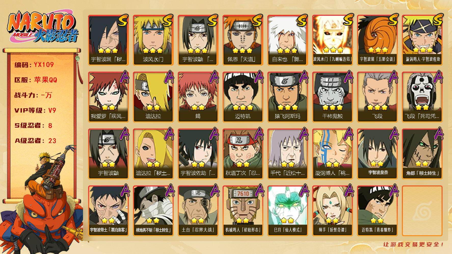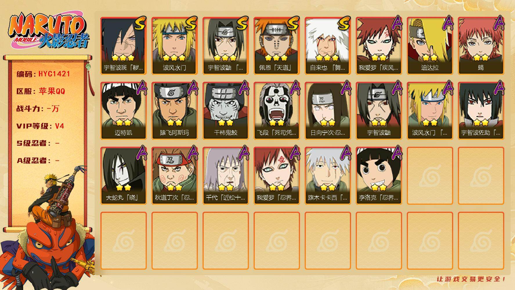 (可免费转苹果)v7,1032w战力,20S级忍者数-48A级忍者数.ME21