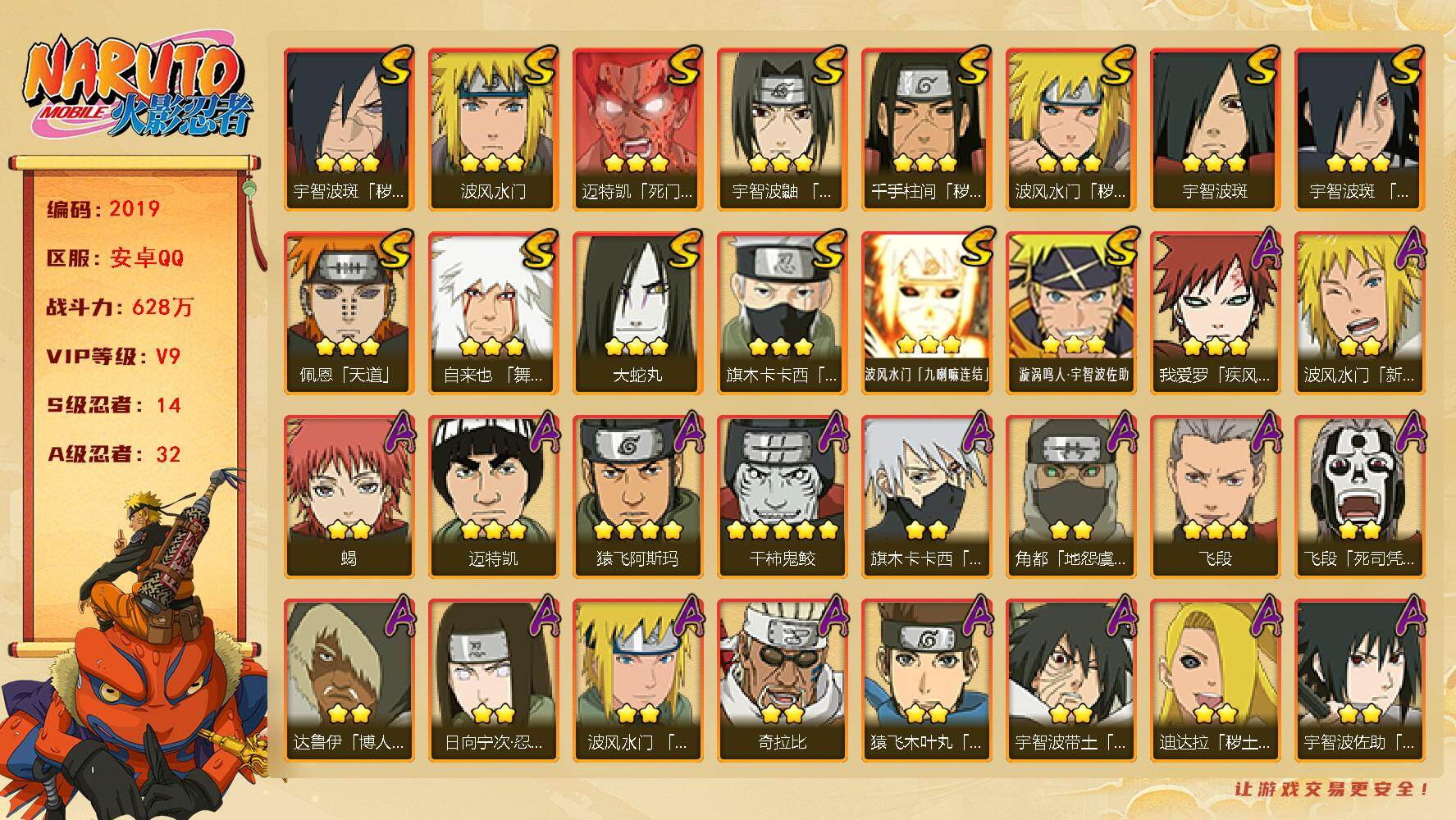 可免费转苹果)v9,628w战力,14S级忍者数-32A级忍者数,传说自来也6