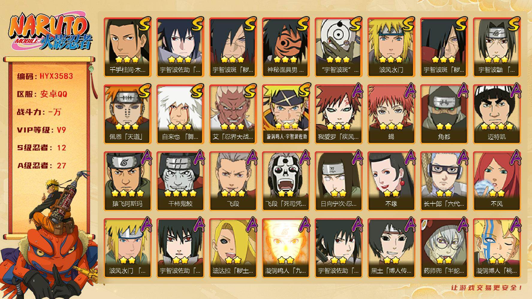 V9/S忍12/A忍27/秽土转生-宇智波斑/4星干柿鬼鲛/忍界大战-日向宁次