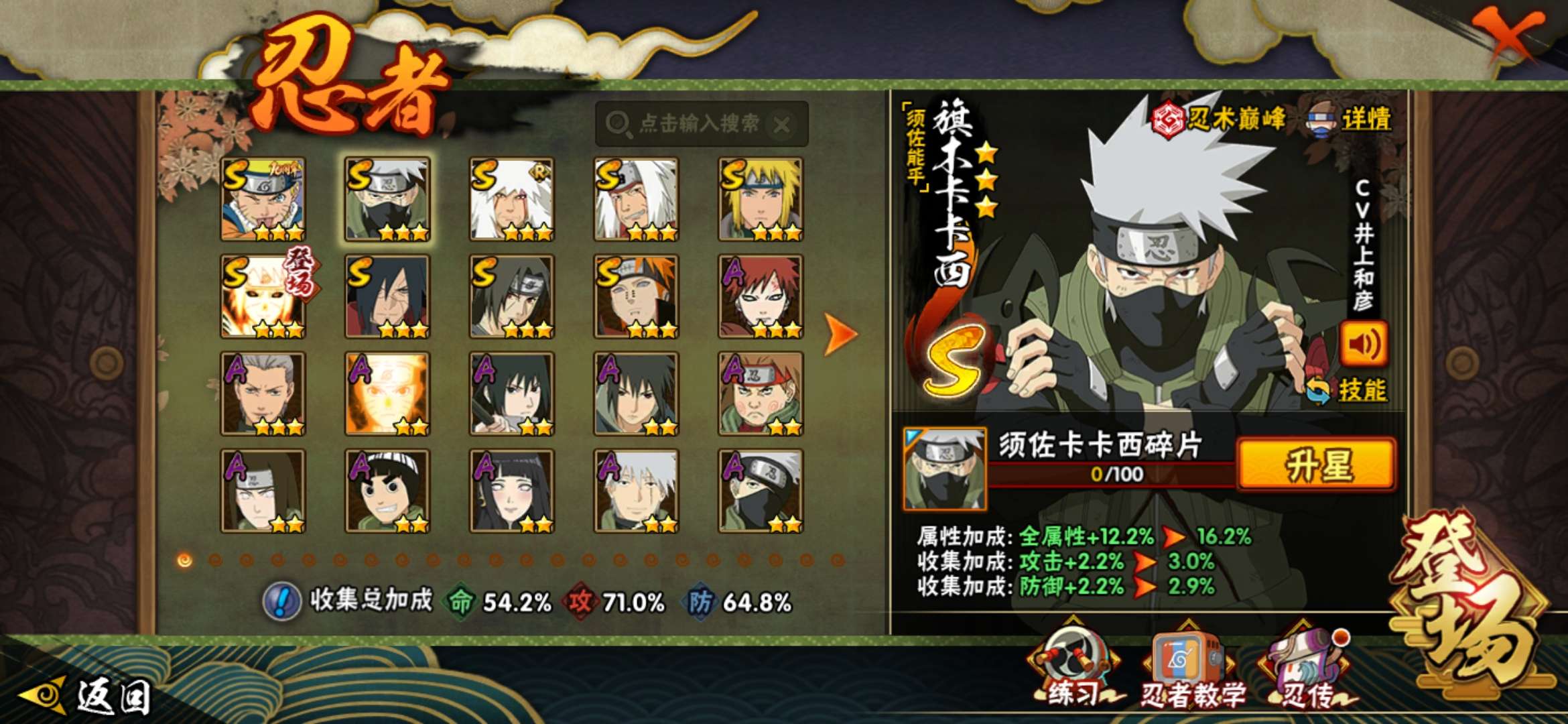 5S秽土解斑,阴水门90片,十尾带土57片,34高招卷,6蓝卷。