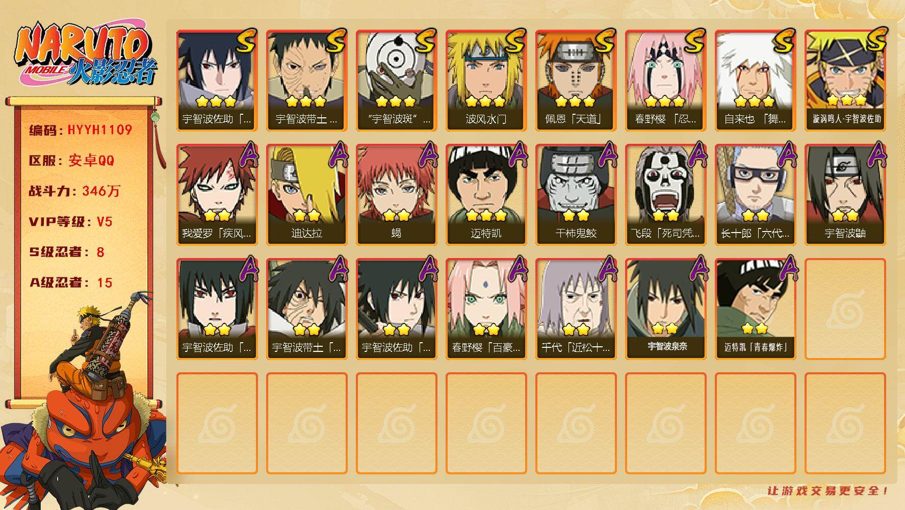 V5/战力346W/S忍8/A忍15/舞之豪杰-自来也/百豪-春野樱
